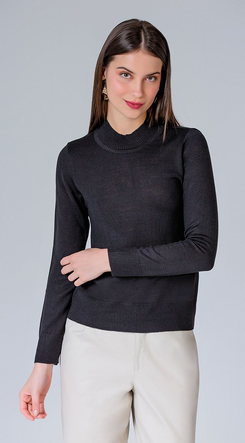 Blusa Maria.Valentina Gola Alta Manga Longa Tricôt Preto