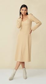OUTLETRoupasVestidosVestido Maria.Valentina Longo Decote Diferenciadao Básico Marrom