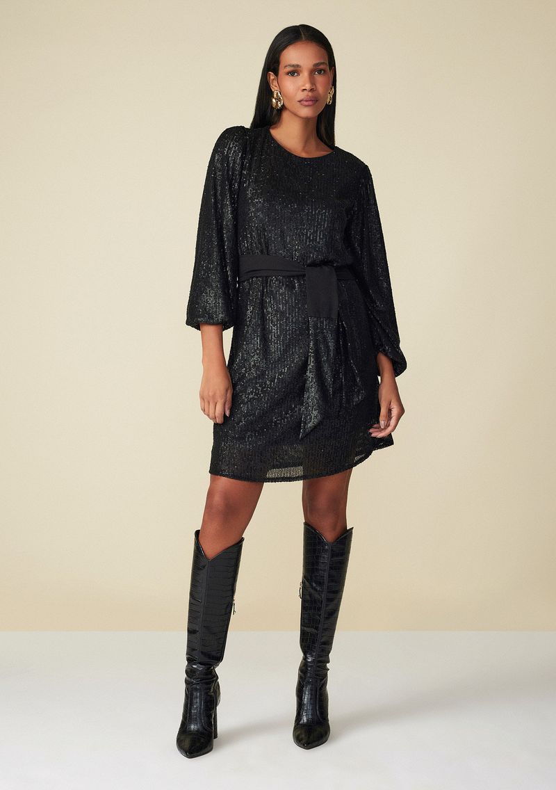 OUTLETRoupasVestidosVestido Maria.Valentina Curto Decote Redondo Com Faixa Preto