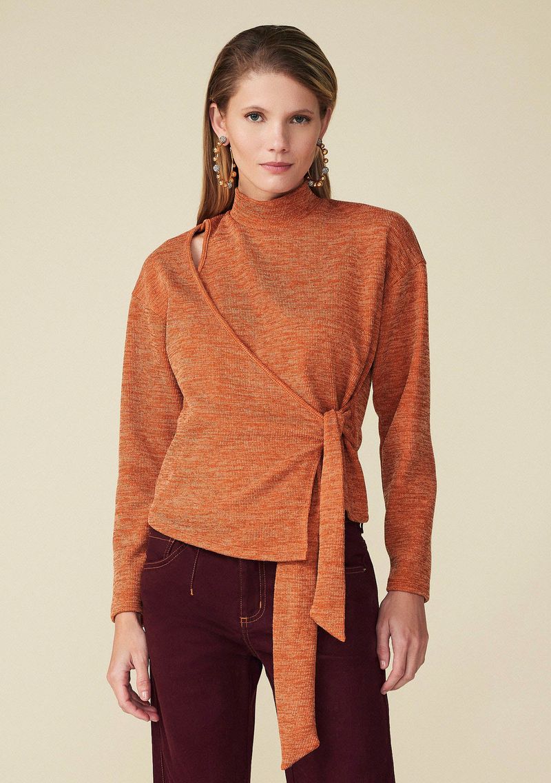 Blusa Maria.Valentina Justa Gola Alta Manga Longa Abertura Frente Laranja