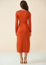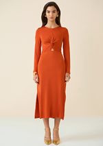 OUTLETRoupasVestidosVestido Maria.Valentina Midi Decote Redondo Torção Frente Laranja