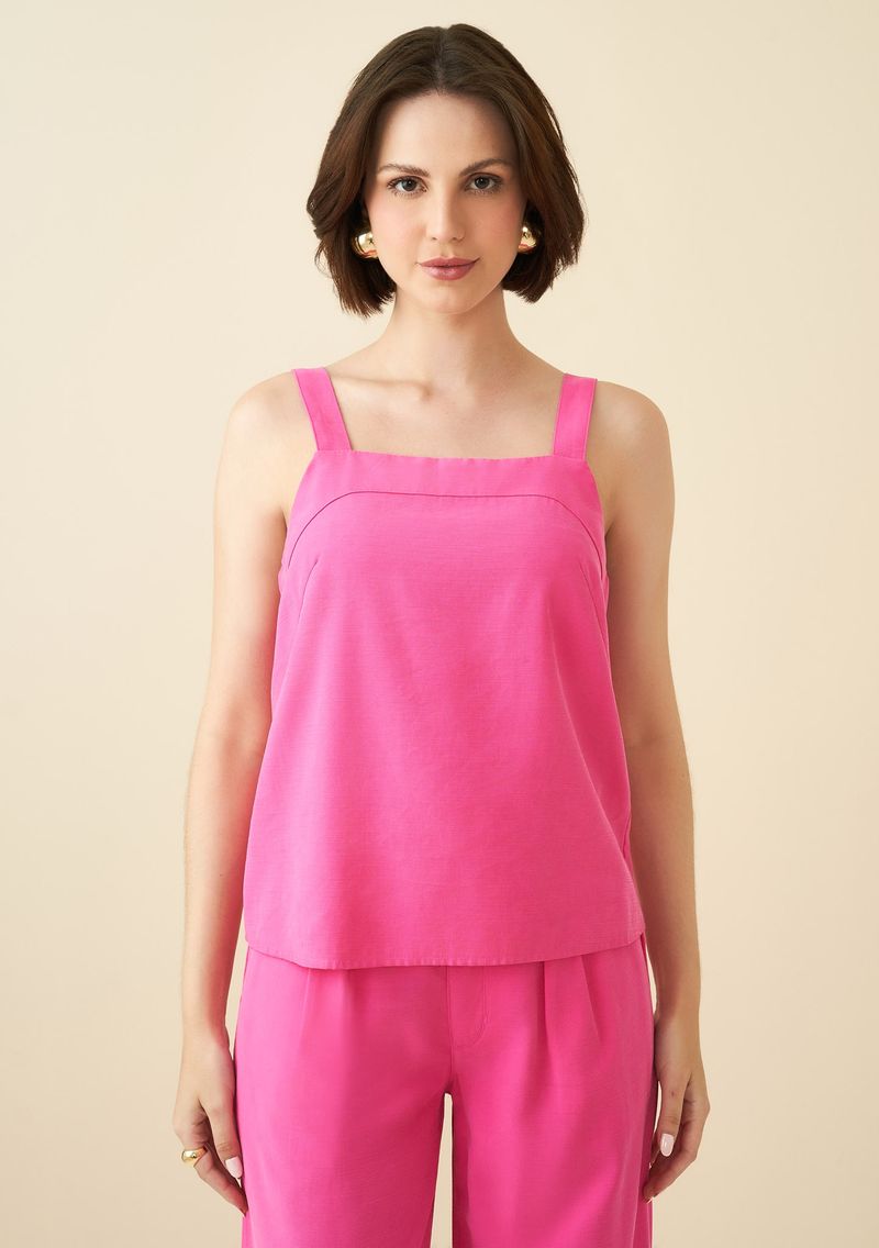 OUTLETRoupasBlusasRegata Maria.Valentina Decote Reto Detalhe Alças Pink