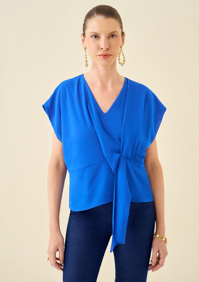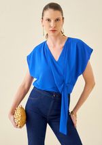 OUTLETRoupasBlusasBlusa Maria.Valentina Decote V Cavada Amarração Frente Azul