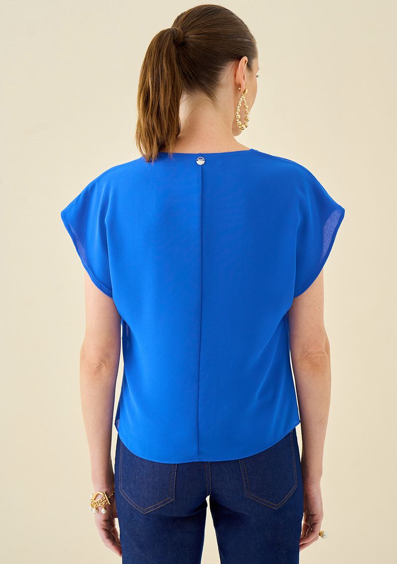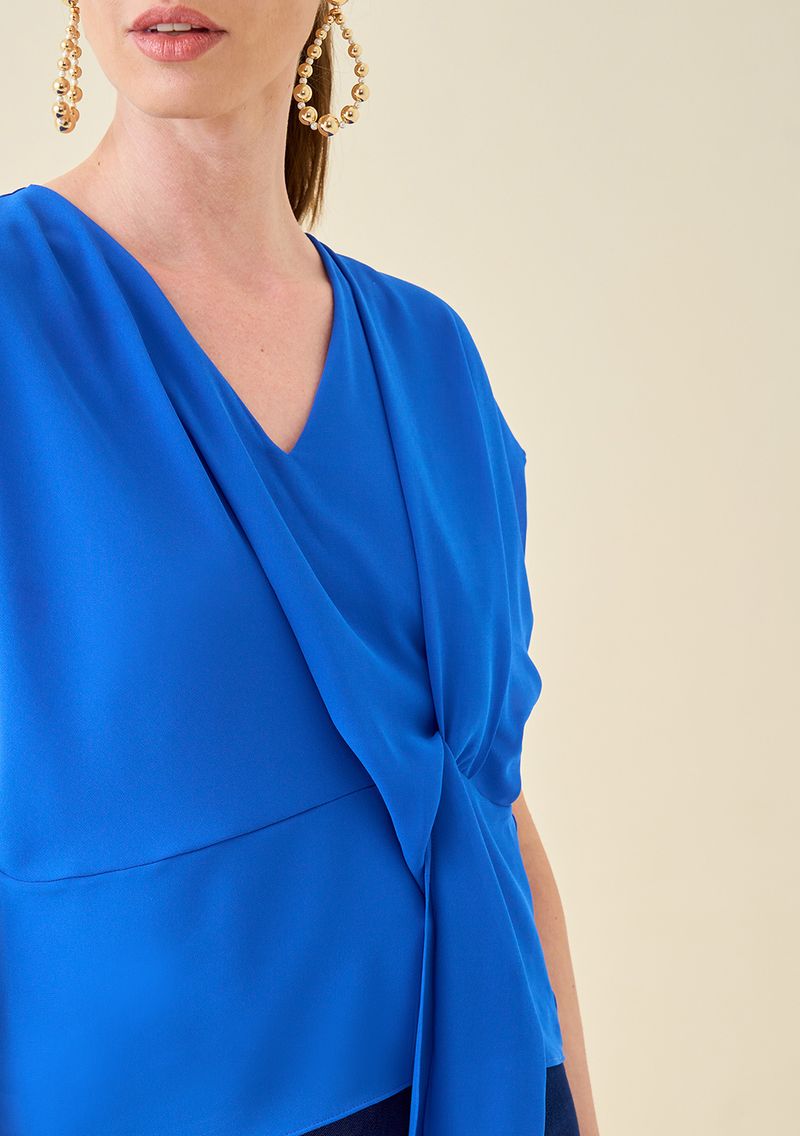 Blusa Maria.Valentina Decote V Cavada Amarração Frente Azul