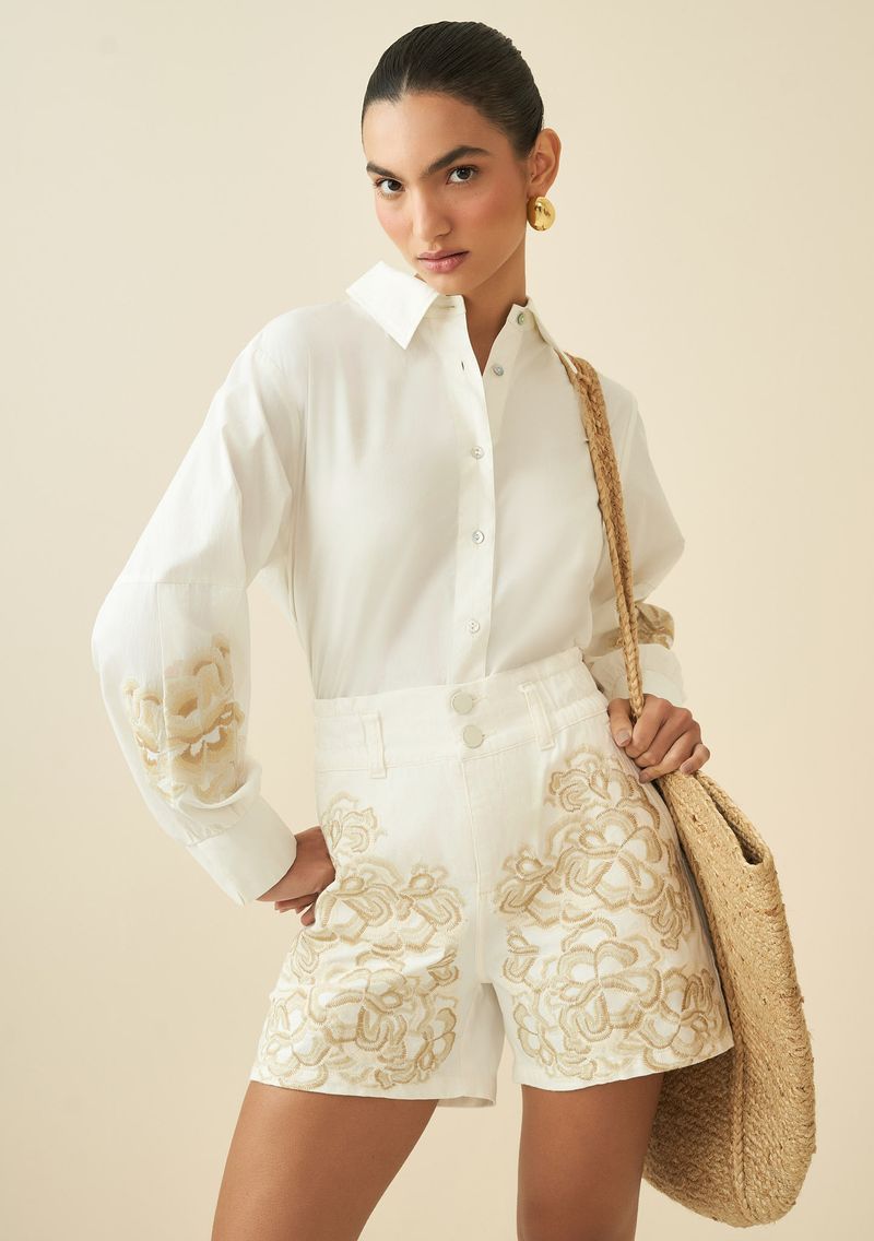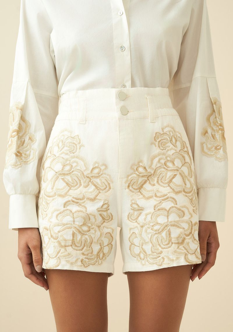 Bermuda Maria.Valentina Regular Bordado Industrial Off White