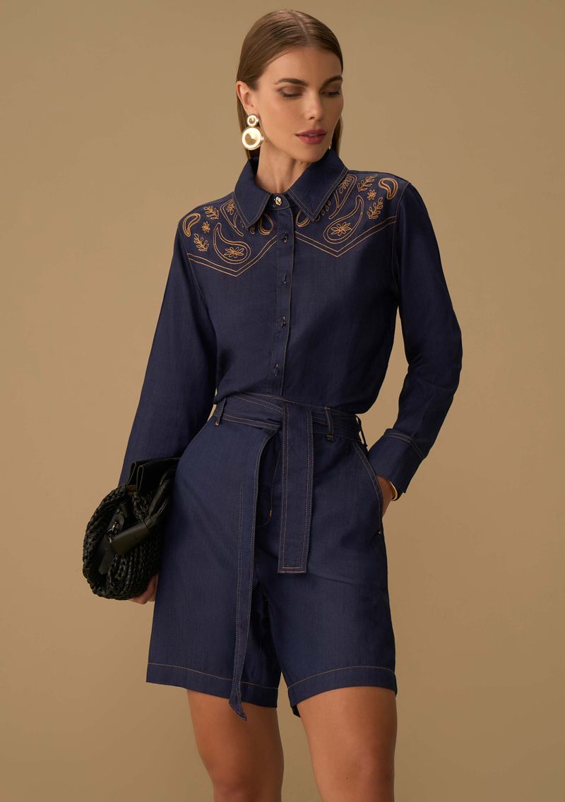 Descubra a elegância clássica com um toque contemporâneo, perfeita para a mulher moderna. Este short em jeans azul, com corte reto e cintura alta, é confeccionado em 100% algodão, garantindo conforto e sofisticação em qualquer ocasião. Ideal para um passeio descontraído ou um evento elegante, combine-o com uma blusa de seda e sandálias de tiras para um visual irresistível. Inspirada pelo Renascimento, a peça reflete a força e atitude da mulher Maria Valentina, unindo arte e moda. Sinta-se confiante e autêntica, expressando sua essência em cada detalhe.