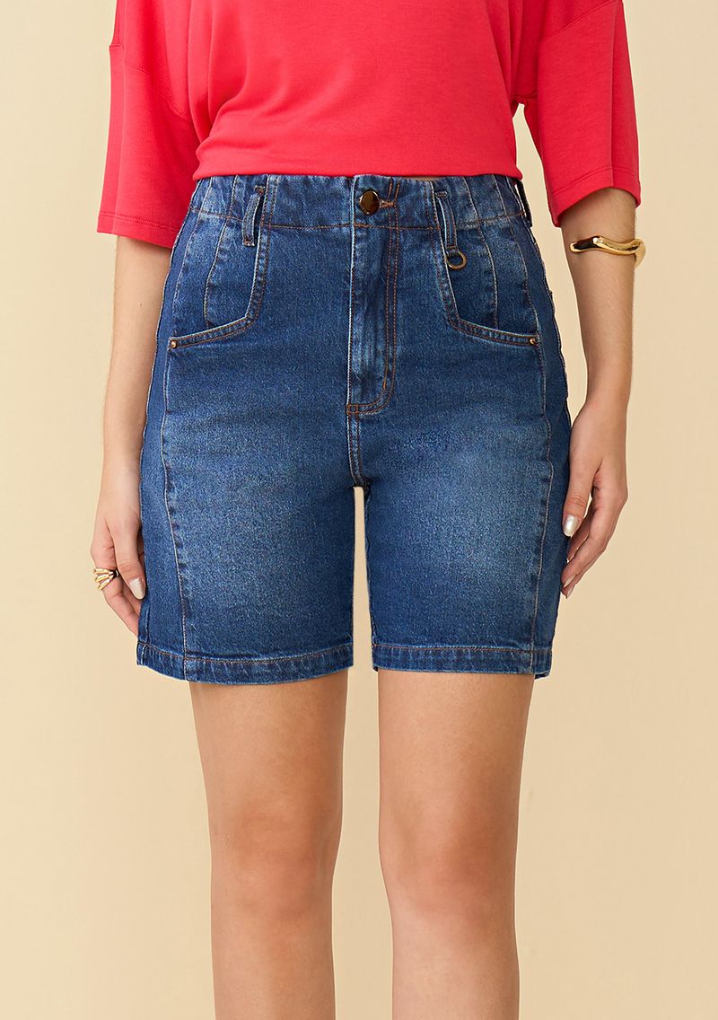 Bermuda Maria.Valentina Reta Com Recortes Jeans