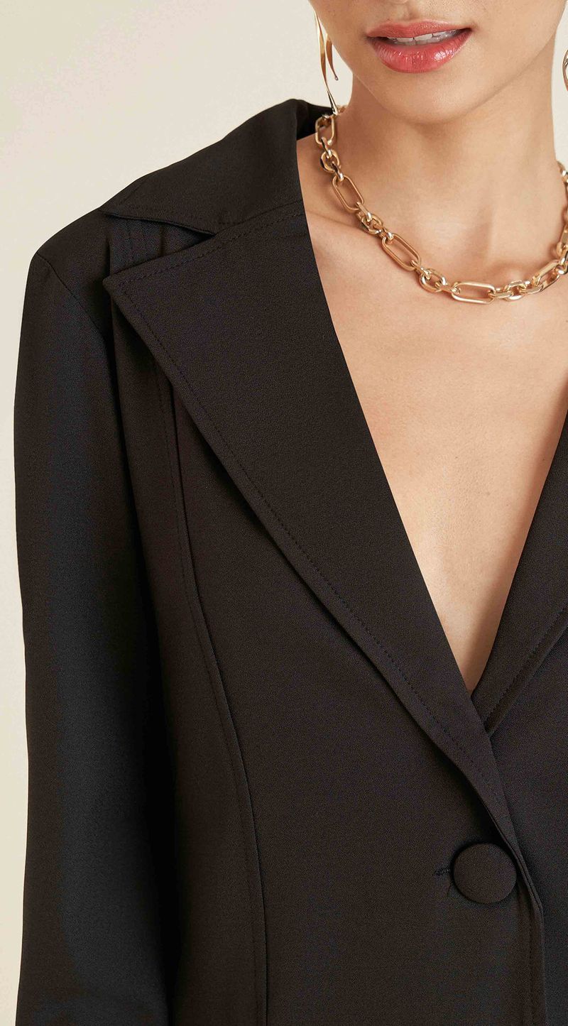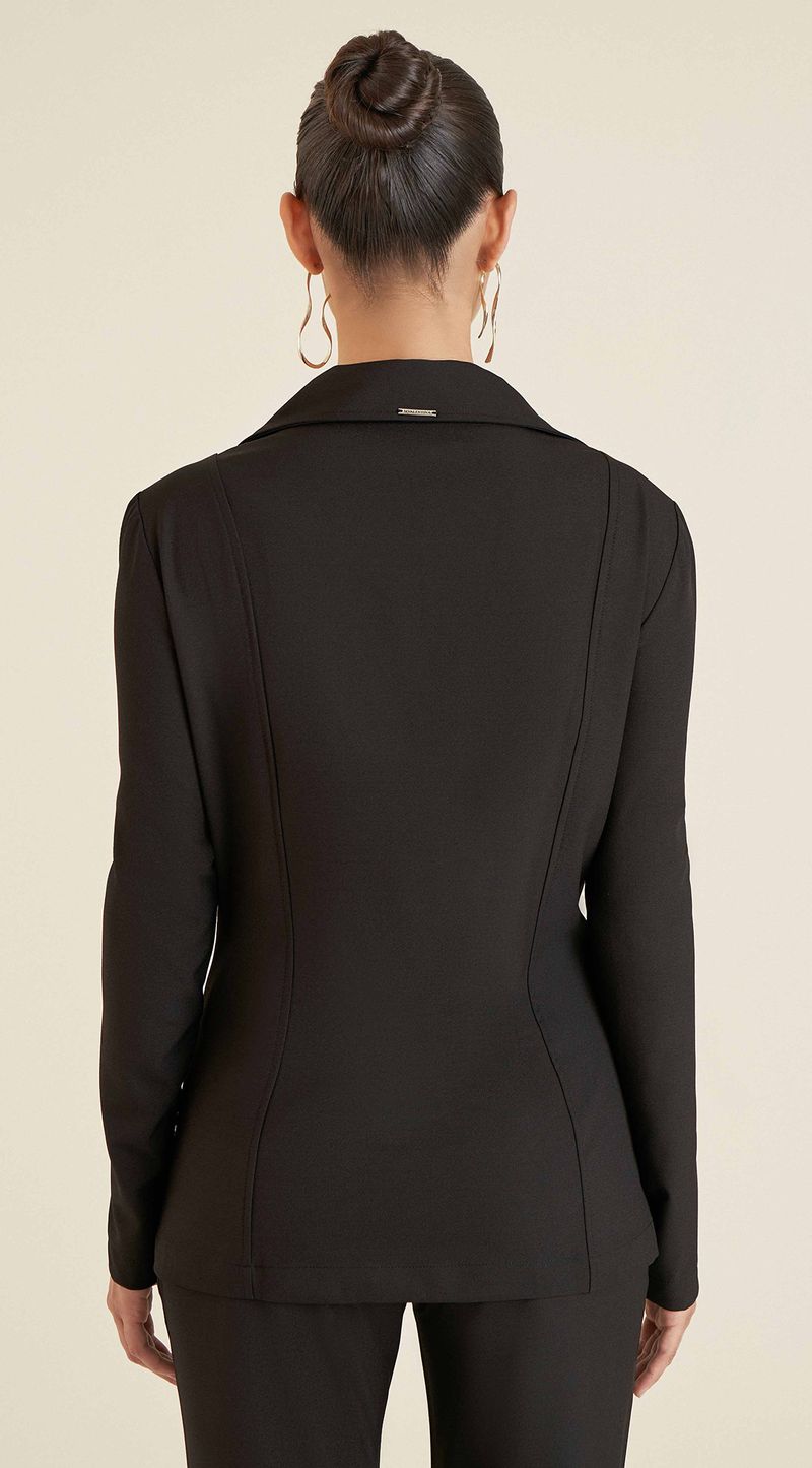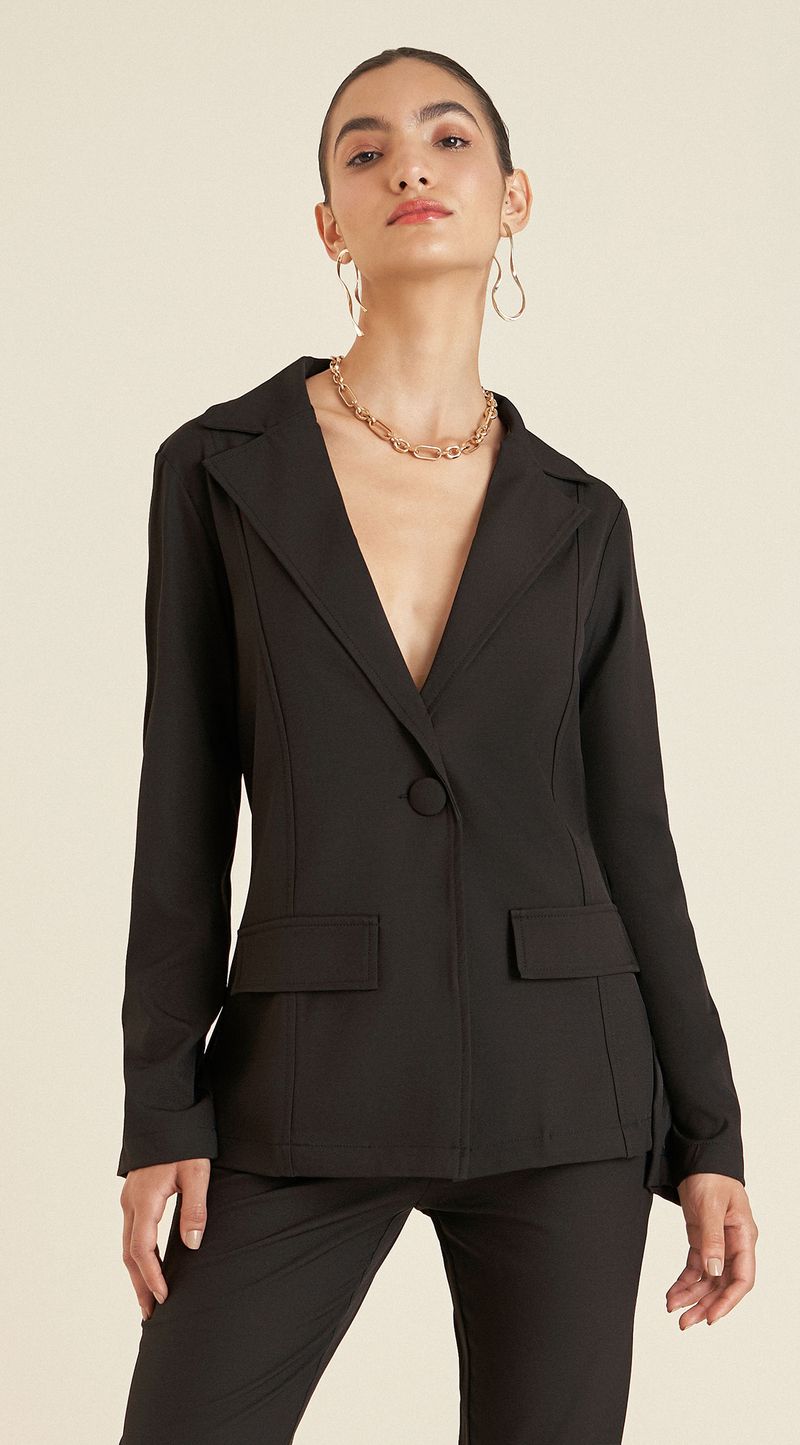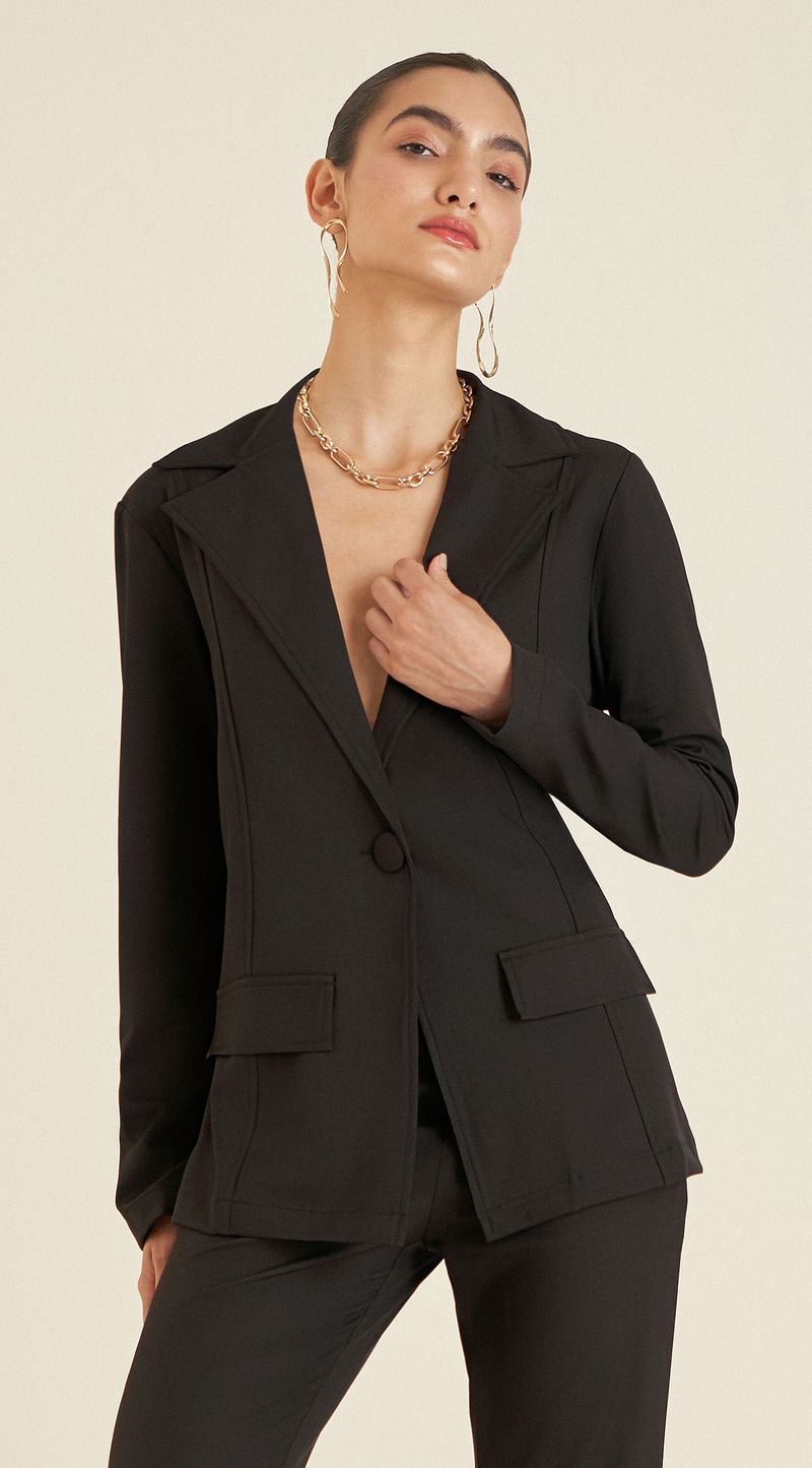 Descubra a elegância atemporal com este blazer preto da Maria.Valentina, peça-chave para qualquer guarda-roupa. Com lapela sofisticada e um corte impecável, ele é confeccionado em poliéster, viscose e elastano, garantindo conforto e caimento perfeito. Ideal para transitar do ambiente de trabalho a eventos sociais, pode ser combinado com uma calça de alfaiataria para um look clássico ou com jeans para um visual moderno. Inspirado na grandiosidade do Renascimento, este blazer reflete a força e a atitude da mulher contemporânea, unindo estilo e funcionalidade. Aposte nesta peça para expressar sua confiança e autenticidade.