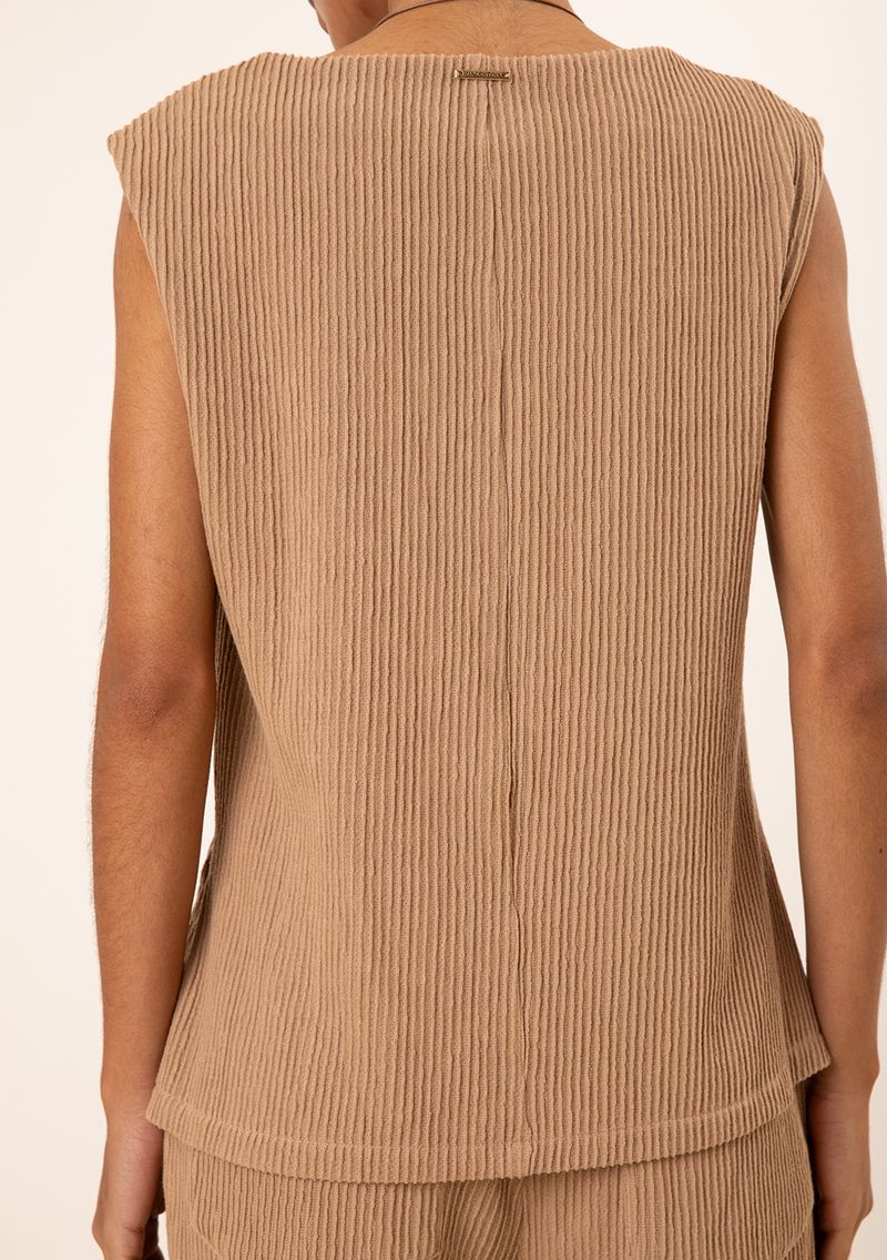Blusa Maria.Valentina Ajustada Decote Careca Sem Alça Padrão Marrom
