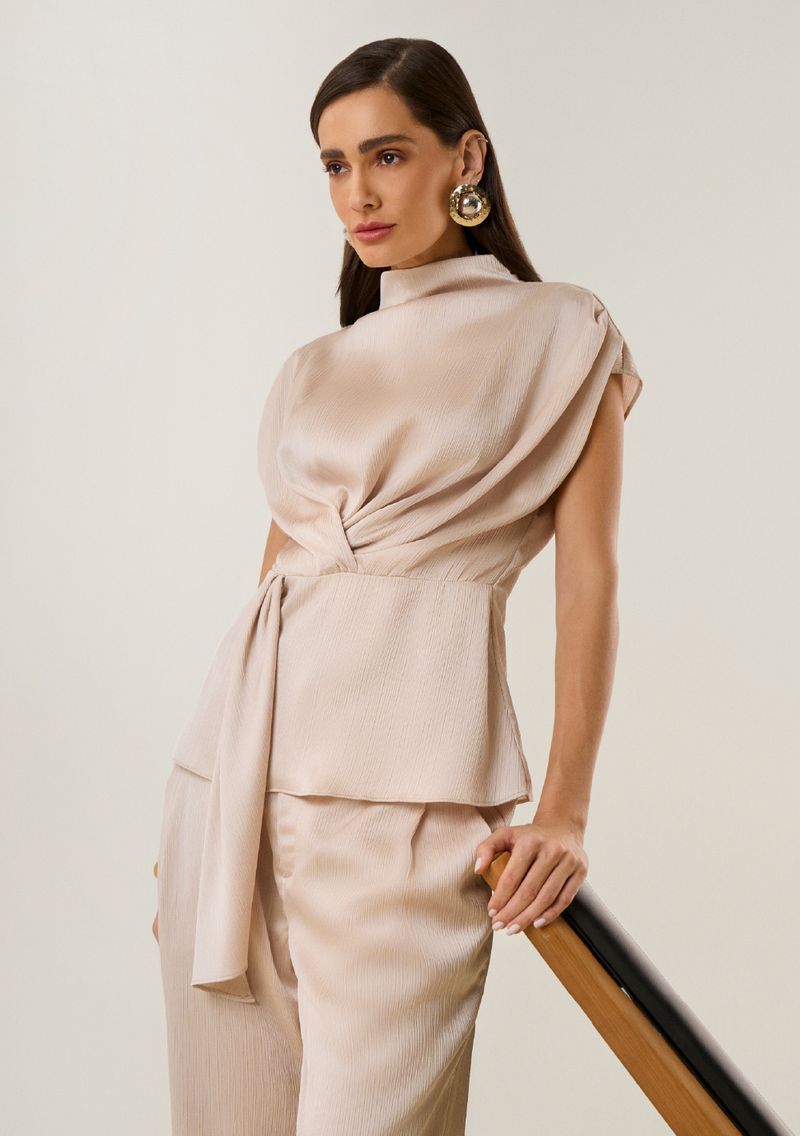RoupasBlusasBlusa Maria.Valentina Ajustada Gola Alta Manga Curta Padrão Bege