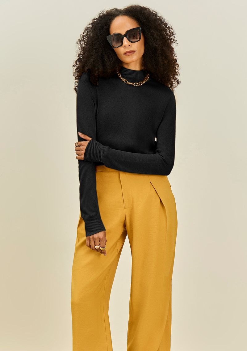 Blusa Maria.Valentina Ajustada Gola Alta Manga Longa Padrão Preto