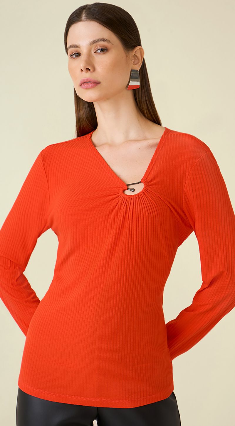 OUTLETRoupasBlusasBlusa Maria.Valentina Decote Assimétrico Manga Longa Com Metal Laranja