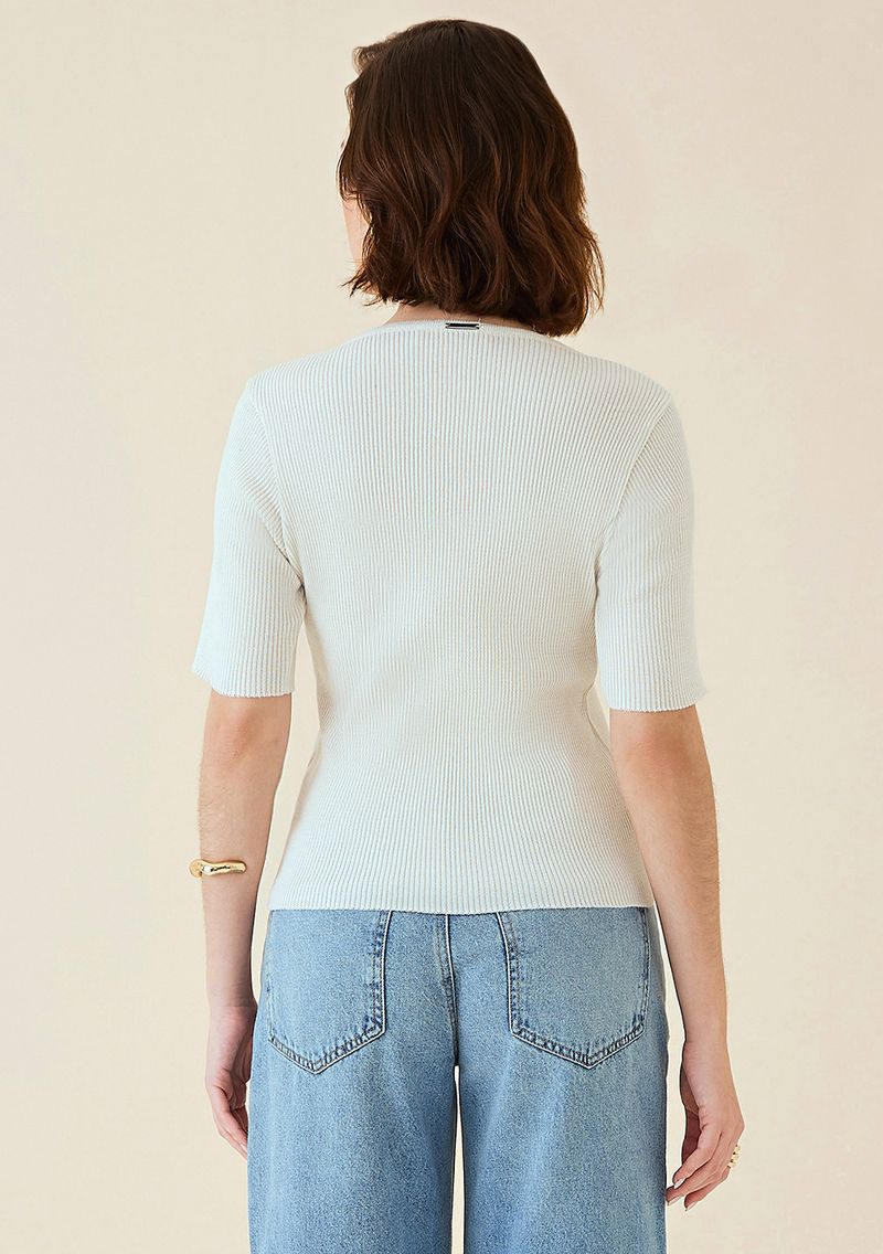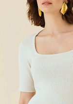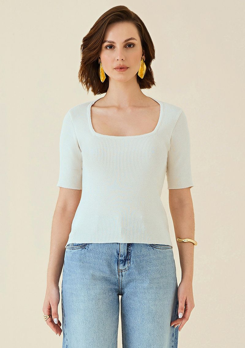 Blusa Maria.Valentina Decote Quadrado Manga Curta Tricot Bege