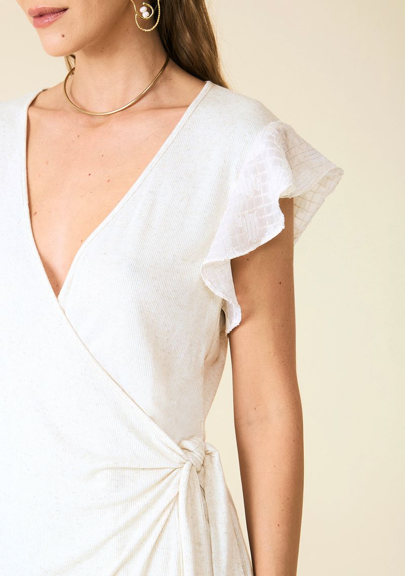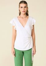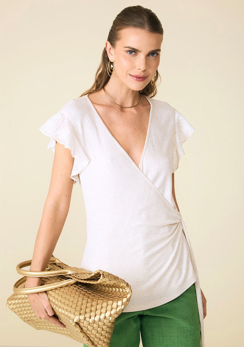 OUTLETRoupasBlusasBlusa Maria.Valentina Decote Transpassado Manga Babado Com Amarração Cru