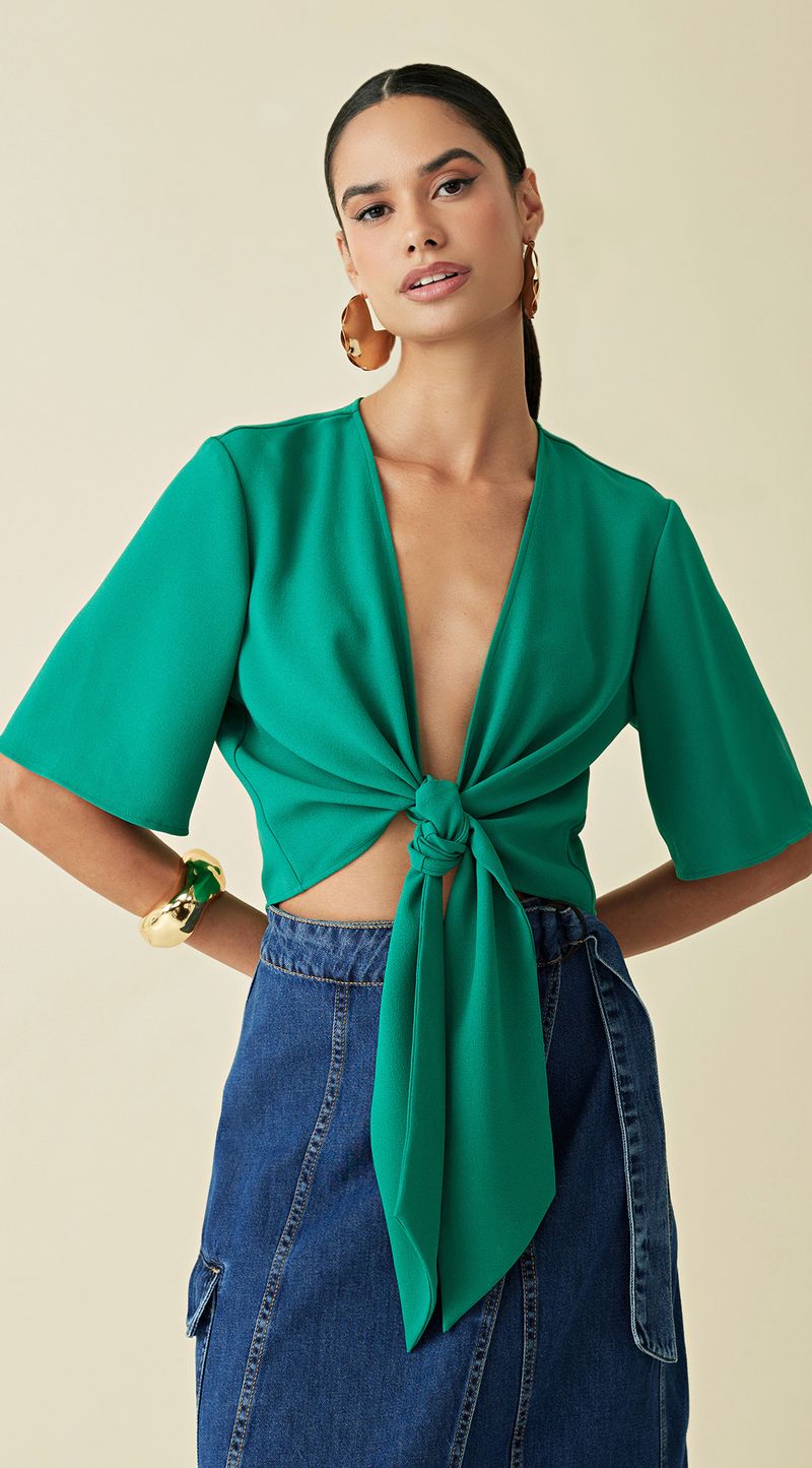 Blusa Maria.Valentina Decote V Manga 3/4 Amarração Frente Verde