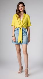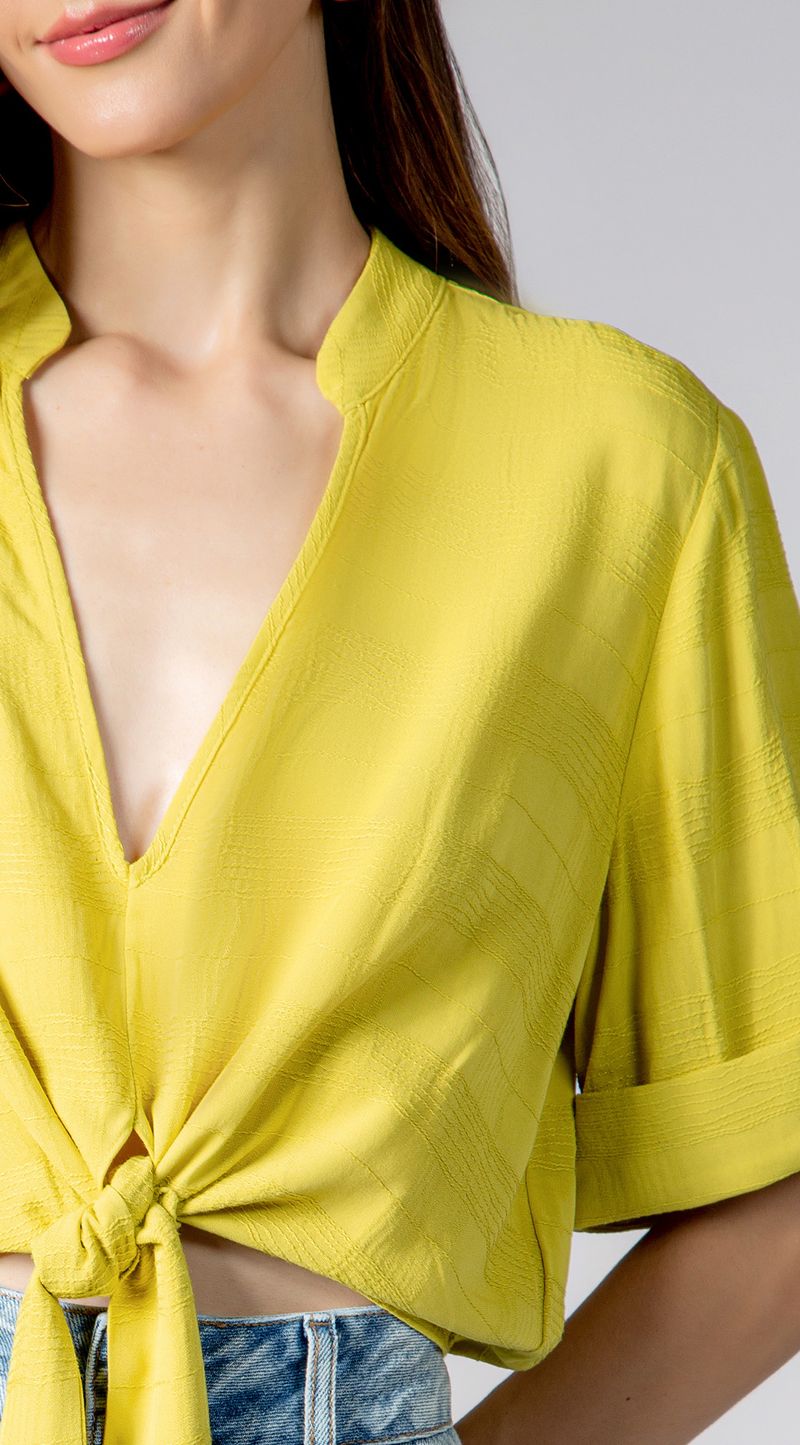 Blusa Maria.Valentina Decote V Manga Curta Com Amarração Verde Claro