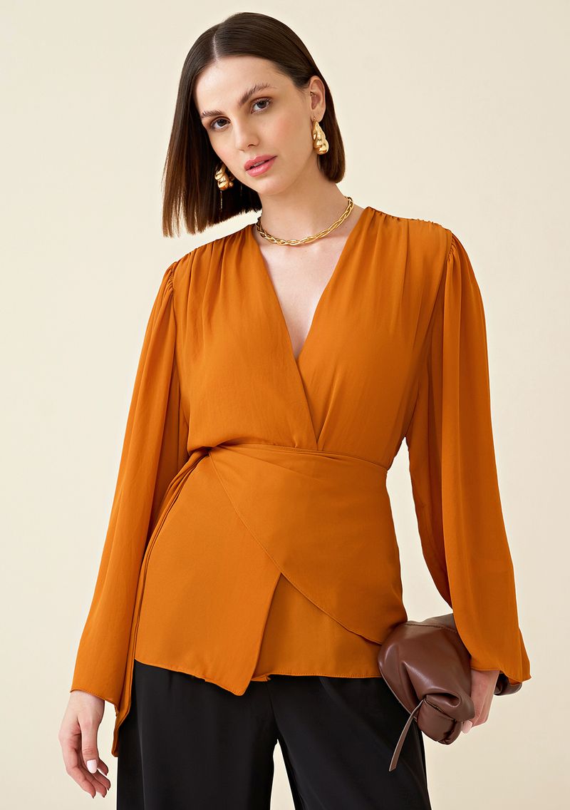 OUTLETRoupasBlusasBlusa Maria.Valentina Decote V Manga Longa Com Franzido Laranja
