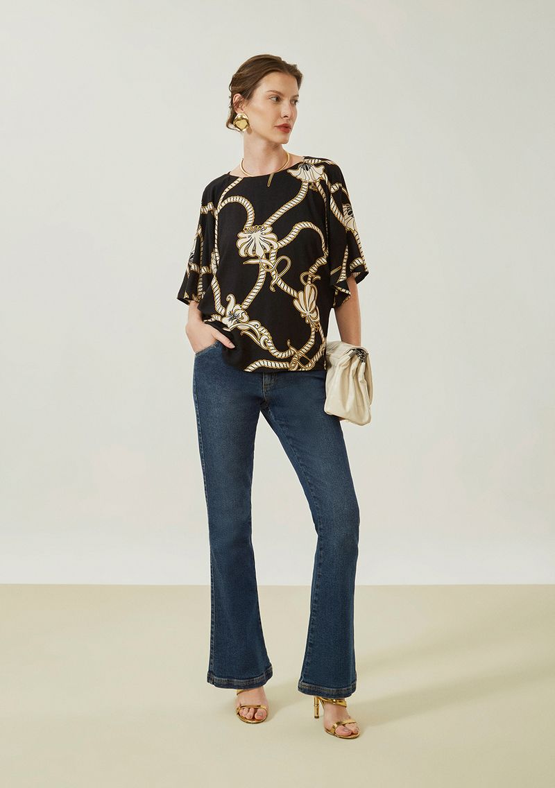 Blusa Maria.Valentina Solta Decote Canoa Manga Curta Padrão Preto
