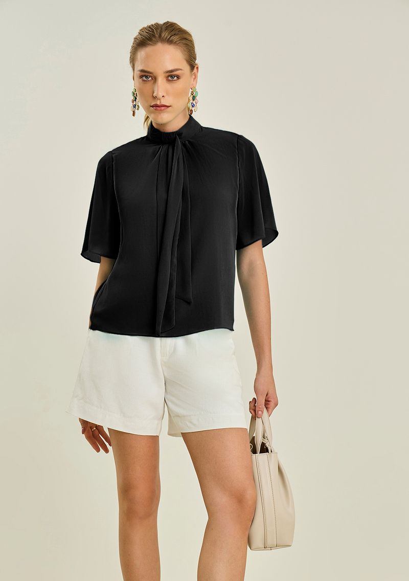 RoupasBlusasBlusa Maria.Valentina Solta Gola Alta Manga 3 Quartos Padrão Preto