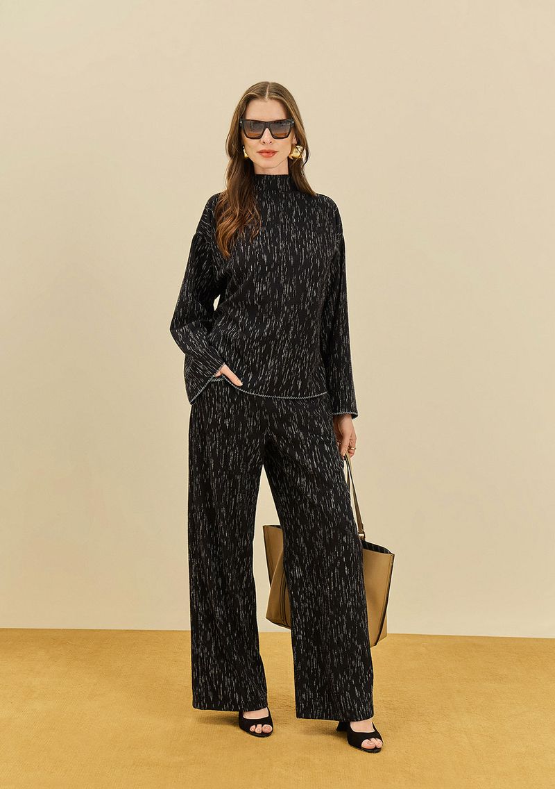 Blusa Maria.Valentina Solta Gola Alta Manga Longa Padrão Preto
