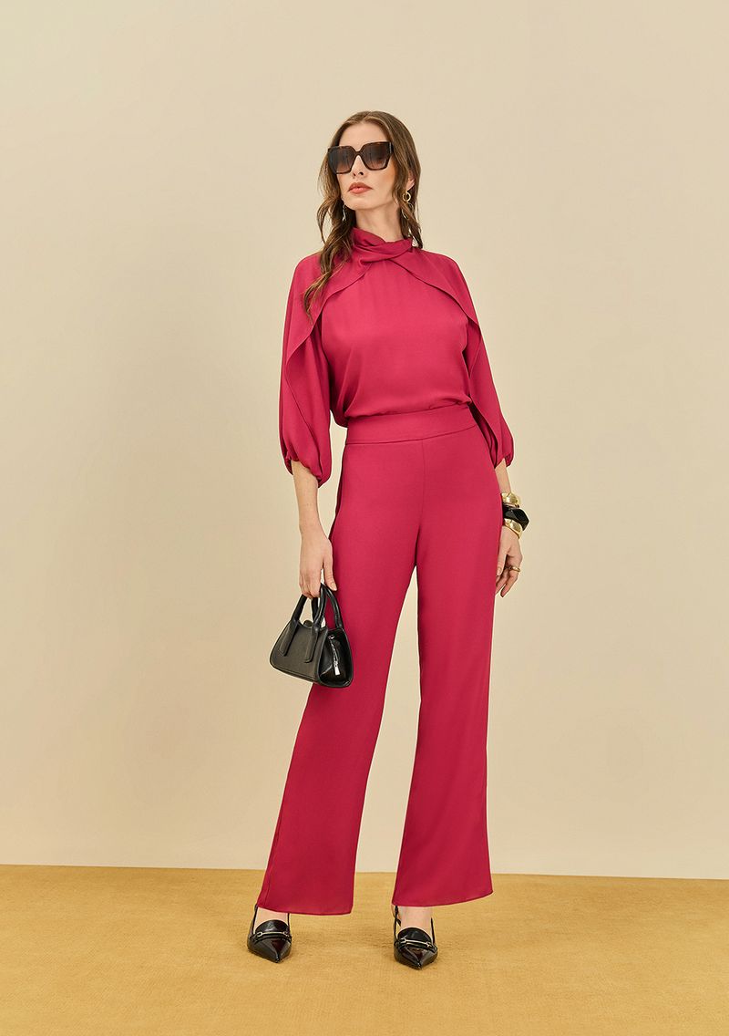 Blusa Maria.Valentina Solta Gola Alta Manga Longa Padrão Rosa