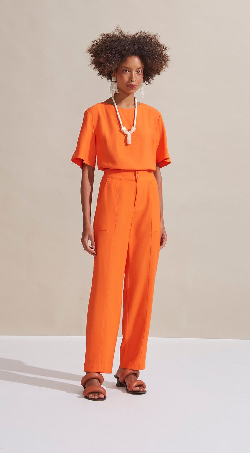 OUTLETRoupasCalçasCalca Maria.Valentina Alfaiataria Cós Alto Bolso Sobreposto Laranja