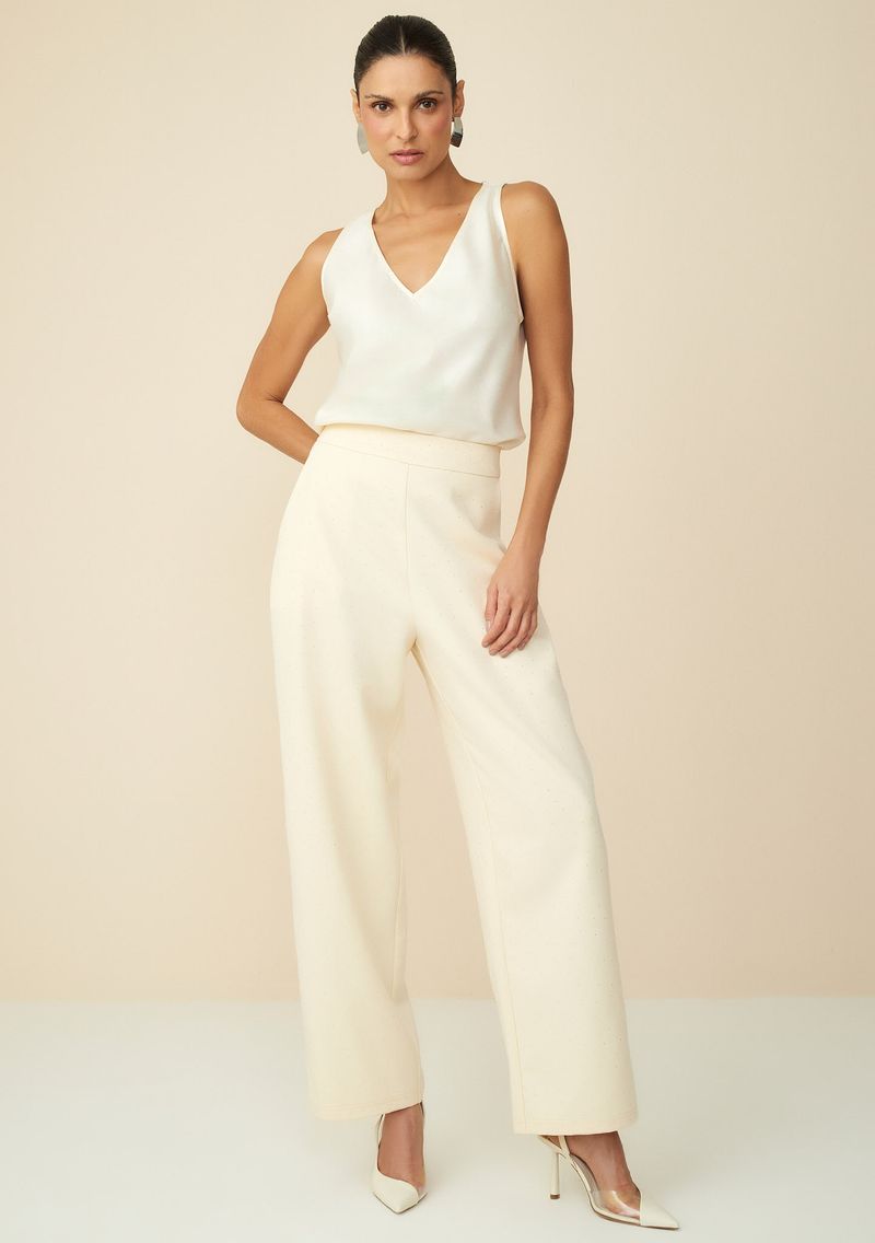 Calça Maria.Valentina Alfaiataria Cós Alto Com Termocolante Bege