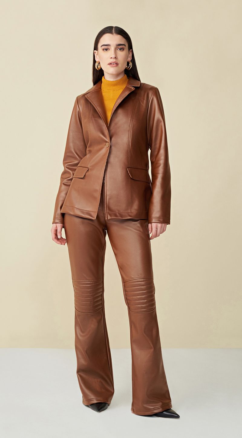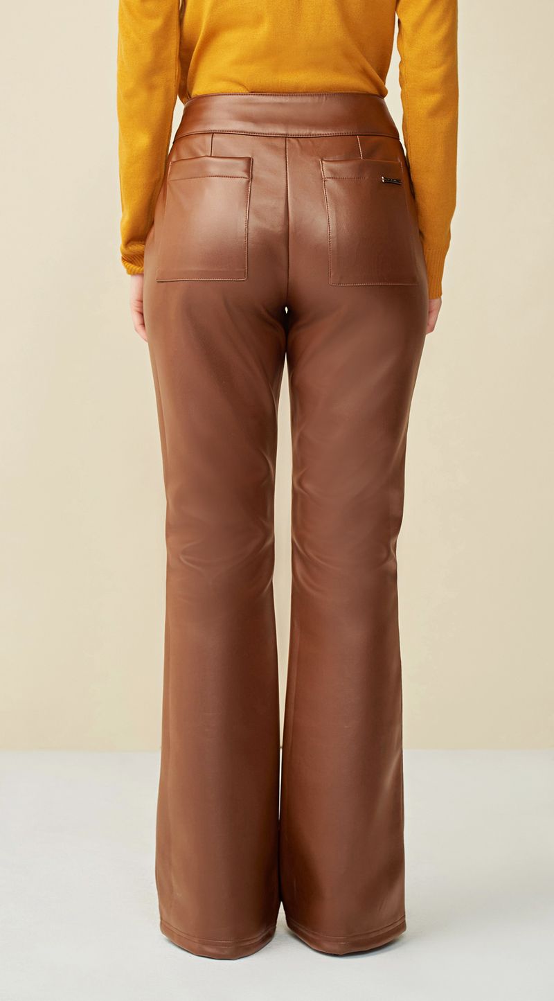 Calca Maria.Valentina Boot Cut Cós Intermediário Com Recorte Marrom