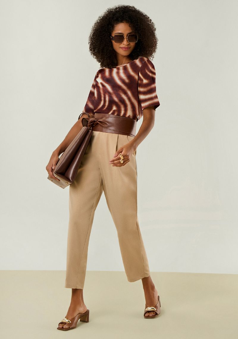 A calça bege da Maria.Valentina é a essência da elegância sofisticada com conforto inigualável. Seu corte cenoura e cintura alta em alfaiataria garantem um visual impecável, enquanto a mistura de poliéster, viscose e elastano envolve o corpo com suavidade. Ideal para ocasiões casuais, combina perfeitamente com blusas leves e acessórios discretos, ideal para um almoço de negócios ou um passeio descontraído. A coleção PELLICOLA, inspirada nos verões italianos, apresenta esta peça como uma celebração da beleza feminina. Aposte neste clássico moderno e sinta-se confiante em qualquer ocasião.