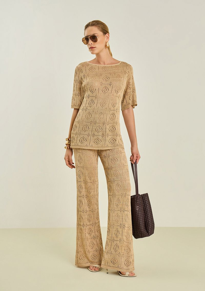 Sinta a leveza e a sofisticação em cada movimento com esta calça flare de cintura alta, que traz um toque vibrante de dourado, ideal para iluminar seus looks de primavera/verão. Com um caimento que valoriza a silhueta feminina e um tecido macio, ela é perfeita para compor visuais elegantes em eventos casuais ou reuniões. Combine-a com uma blusa de seda e sandálias de tiras para um toque chic, ou aposte em uma t-shirt básica e tênis para um estilo mais descontraído. A calça é uma peça versátil que reflete a autoconfiança e o estilo único da mulher contemporânea.