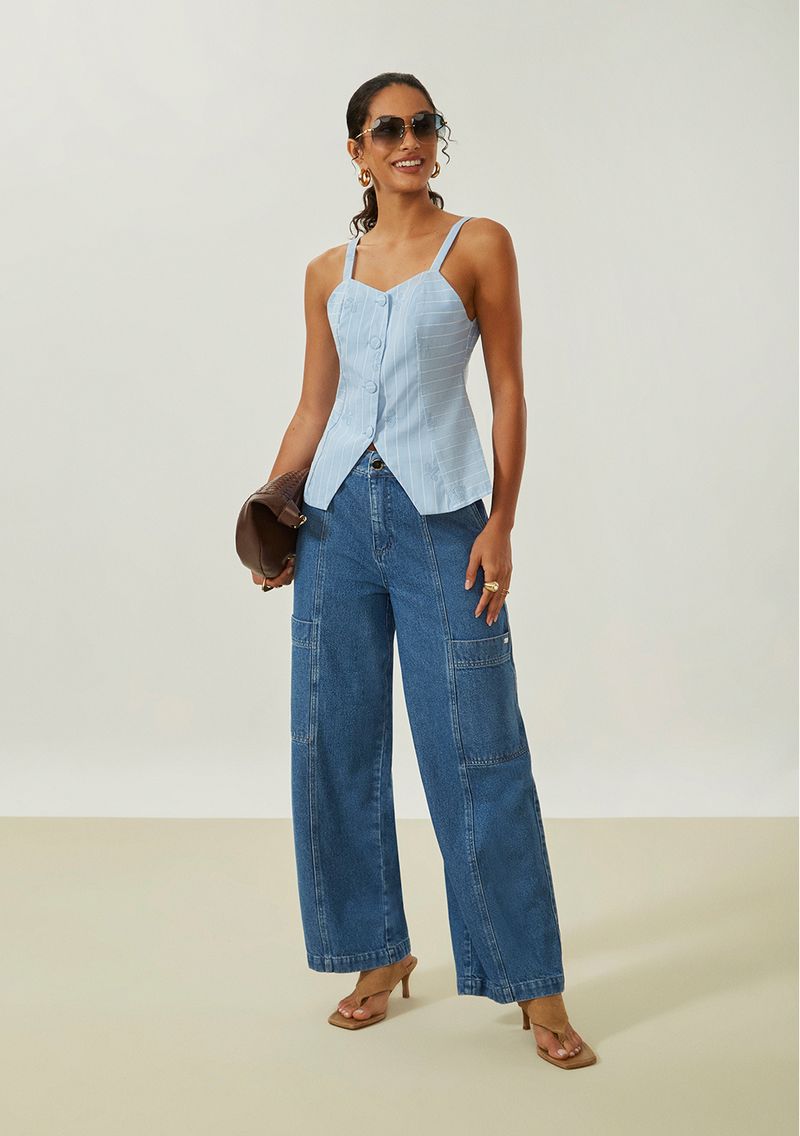 Eleve seu estilo com a calça pantalona alta em azul profundo da Maria.Valentina. Feita de jeans 100% algodão, esta peça une conforto e sofisticação, perfeita para a primavera/verão. A modelagem impecável garante charme em qualquer ocasião, seja para um jantar elegante ou uma reunião importante. Combine com uma blusa de seda e saltos para um visual refinado, ou opte por uma camisa casual para um look descontraído. Parte da coleção que celebra memórias e elegância atemporal, esta calça é um convite à autoconfiança. Aposte em acessórios dourados para realçar o azul vibrante e complemente com uma clutch minimalista. A marca Maria.Valentina, reconhecida por sua qualidade premium, reflete o estilo e a essência da mulher moderna, sofisticada e realizada.