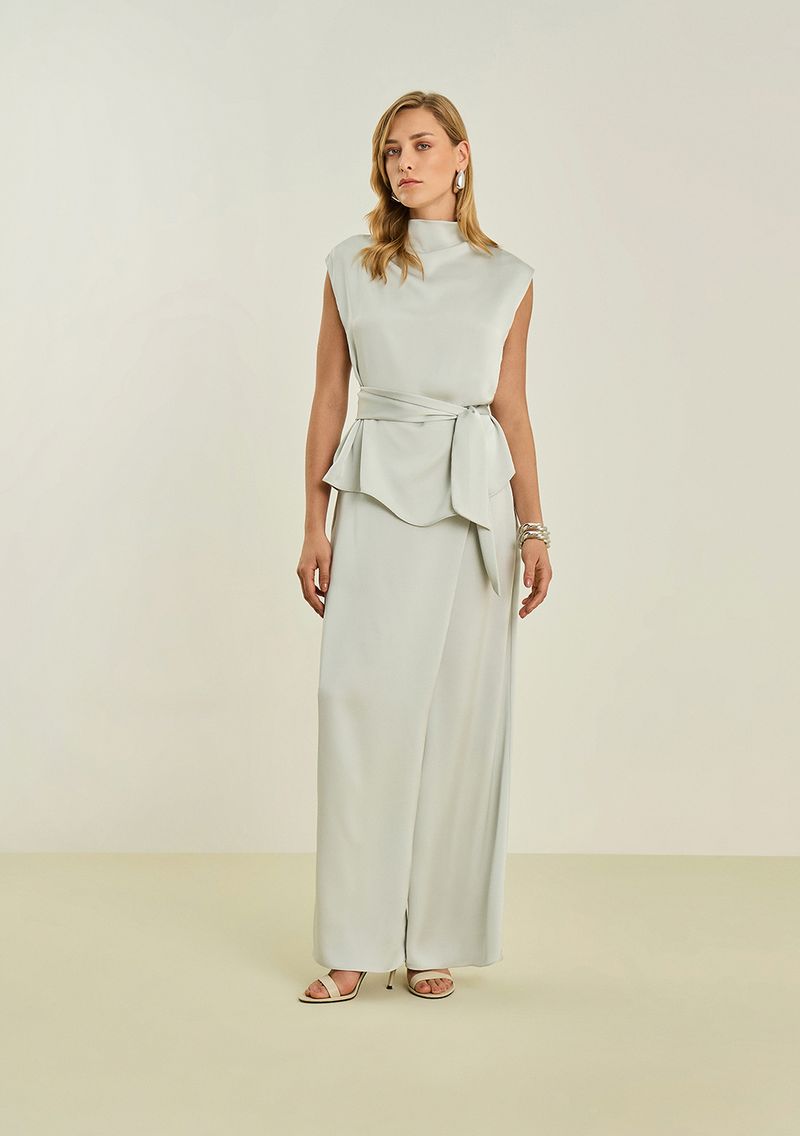 Experimente a elegância atemporal com essa calça pantalona cinza, uma peça chave da coleção LITORALE da Maria.Valentina. Com um caimento perfeito e confeccionada em cetim de poliéster, proporciona conforto e sofisticação em qualquer ocasião. O design amplo valoriza a silhueta feminina e é ideal para eventos sociais ou jantares especiais. Combine com uma blusa de seda e sandálias de tiras para um look deslumbrante. Aposte em acessórios delicados para realçar ainda mais sua presença marcante.