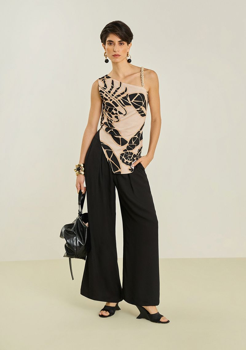 A calça pantalona alta da Maria.Valentina é a definição de elegância e versatilidade. Com um corte amplo e fluido, ela oferece conforto e sofisticação para diversas ocasiões, desde reuniões importantes até um jantar à luz de velas. Seu tecido leve de crepe, 100% poliéster, proporciona um caimento impecável, permitindo liberdade de movimento. O tom preto é uma escolha atemporal que combina facilmente com blusas estampadas ou neutras, e acessórios como um cinto delicado ou brincos statement. Ideal para a mulher confiante que busca uma peça que exalte sua feminilidade e estilo. Aposte em looks que refletem sua personalidade e aproveite a coleção Litorale, que traz a essência vibrante do litoral mediterrâneo para o seu guarda-roupa.