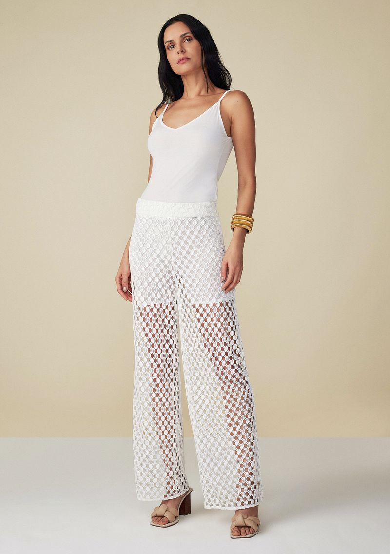 OUTLETRoupasCalçasCalça Maria.Valentina Pantalona Cós Intermediário Detalhe Tela Off White