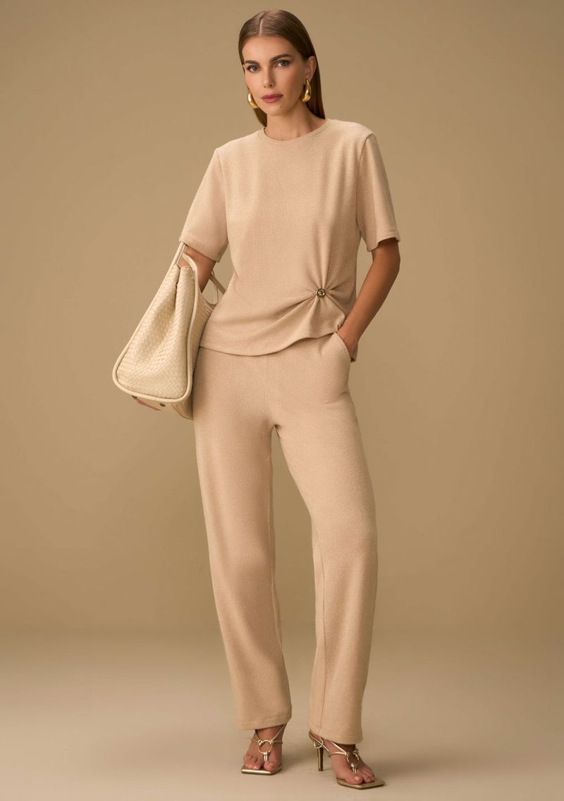 Descubra a elegância atemporal desta calça bege de corte reto e cintura alta da Maria.Valentina, que combina sofisticação e conforto em uma peça essencial para o guarda-roupa feminino. Feita em malha de alta qualidade, com poliéster, viscose e elastano, ela oferece um caimento impecável e versátil, ideal para eventos casuais ou profissionais. Combine-a com uma blusa de seda e salto alto para um look poderoso, ou com uma camiseta básica e tênis para um visual descontraído e chic. Inspirada pela grandiosidade renascentista, essa peça é um tributo à mulher moderna que busca autenticidade e estilo em cada escolha. Invista em você e brilhe em todas as ocasiões!