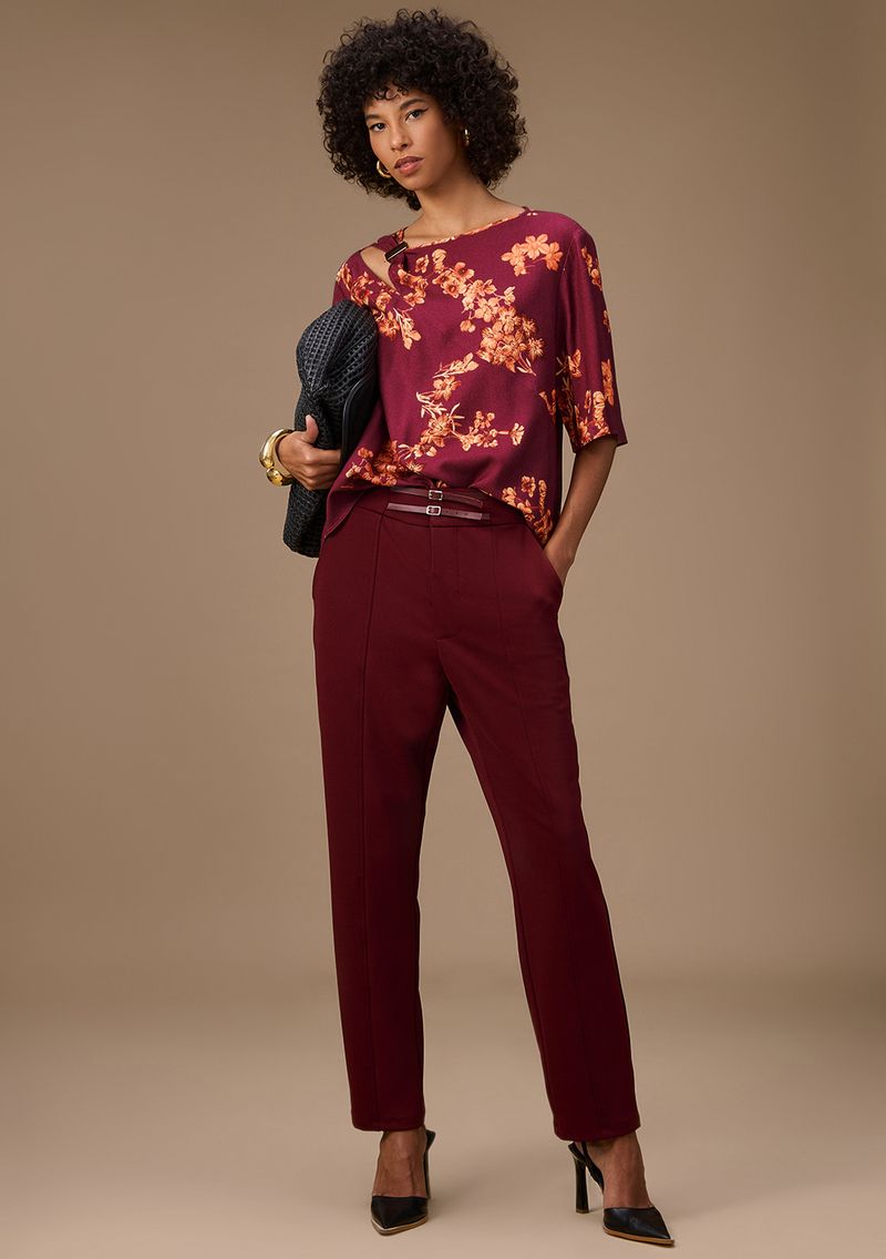 A calça reta alta em bordo da Maria.Valentina é a expressão máxima da elegância e conforto. Com uma composição de 94% poliéster e 6% elastano, ela proporciona um caimento perfeito que abraça seu corpo, garantindo confiança e sofisticação em qualquer ocasião. Inspirada pela arquitetura italiana, é ideal para combinar com uma blusa de seda e um blazer estruturado, criando um look que transita facilmente entre o casual e o sofisticado. Complemente com acessórios dourados para um toque final de luxo. A coleção de inverno captura a essência das paisagens italianas, perfeita para a mulher moderna que valoriza design apurado e bem-estar. Invista em estilo e autoconfiança.