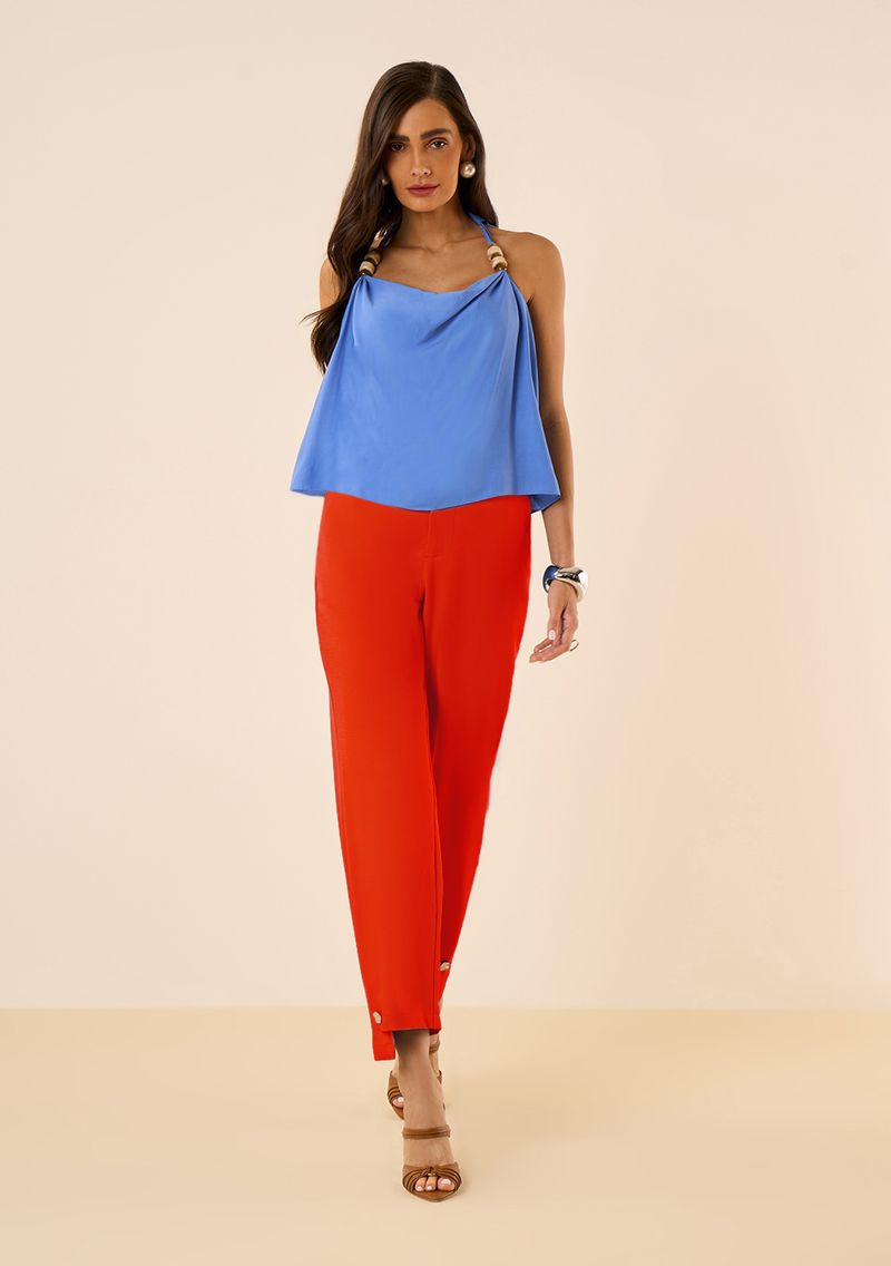 Apresentando uma calça que exala elegância e sofisticação em um vibrante tom laranja. Com um corte reto e cintura alta, essa peça é ideal para compor looks que transitam do casual ao refinado, perfeita para reuniões de trabalho ou jantares especiais. Seu tecido crepe, composto por 79% poliéster, 16% viscose e 5% elastano, proporciona conforto e um caimento impecável. Combine-a com uma blusa branca de tecido leve e sandálias de salto para um visual impactante, ou opte por uma camiseta básica e tênis para um estilo mais descontraído. A coleção PELLICOLA, que inspira essa criação, traz a essência do verão italiano, celebrando a beleza na simplicidade e a força feminina.