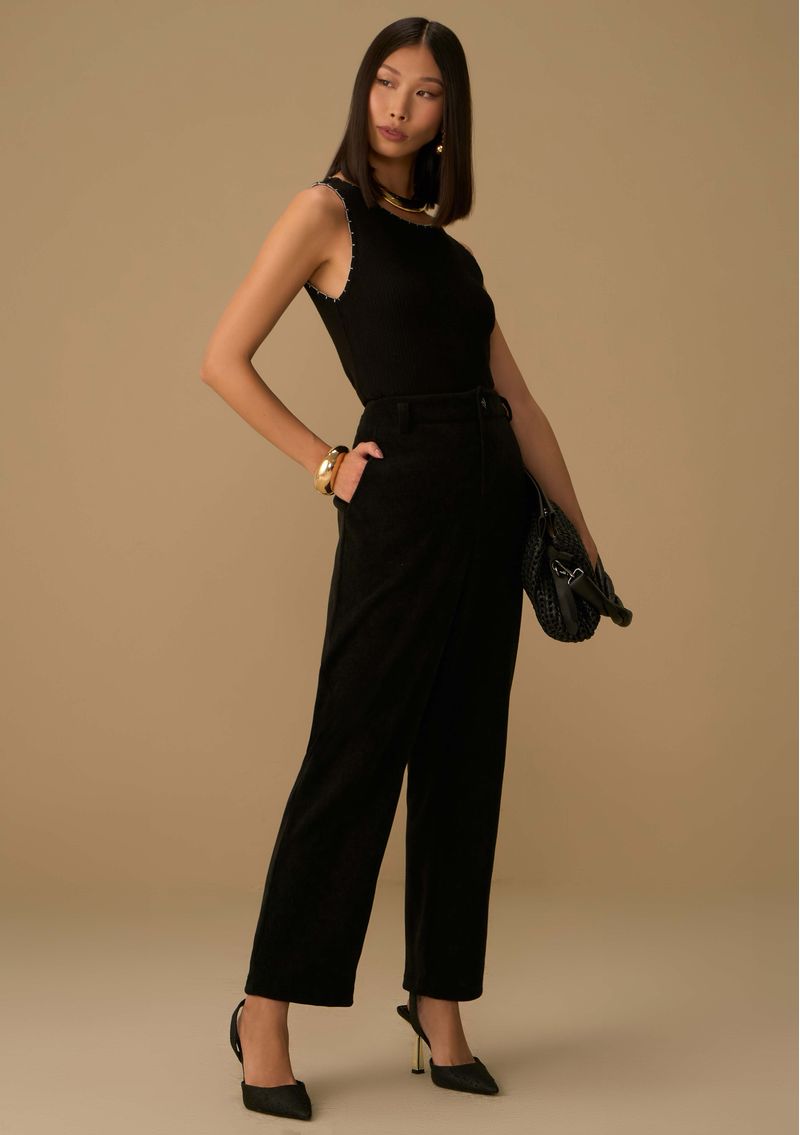 A calça reta alta preta da Maria Valentina é a definição perfeita de sofisticação e conforto. Com uma modelagem em alfaiataria impecável, ela é confeccionada em malha de poliéster com um toque de elastano, garantindo um caimento que abraça suas curvas com suavidade e elegância. Ideal para ocasiões casuais, esta peça é versátil e pode ser combinada com uma blusa de seda em tons neutros e um blazer estruturado para um look de trabalho poderoso, ou com uma camisa estampada e acessórios discretos para um jantar especial. A inspiração renascentista da nova coleção traz um toque de arte e história para o seu guarda-roupa, refletindo a força e a atitude da mulher contemporânea. Invista em uma peça que traduz seu estilo e eleva sua confiança.