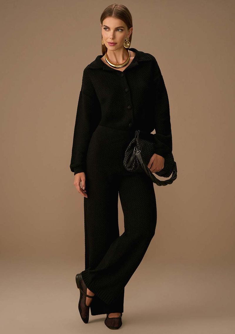 A calça preta de cintura alta da Maria Valentina é o toque de sofisticação que faltava no seu guarda-roupa. Com modelagem reta e alfaiataria precisa, oferece o equilíbrio perfeito entre conforto e estilo. Ideal para ocasiões casuais, esta peça em malha de alta qualidade envolve seu corpo com elegância e versatilidade. Combine-a com blusas estampadas para um visual moderno, ou opte por camisas clássicas para um look mais formal. Aposte em acessórios discretos para completar o visual. Inspirada na grandiosidade do Renascimento, a coleção Maria Valentina é um tributo à beleza e força feminina. Sinta-se confiante e autêntica em cada detalhe.