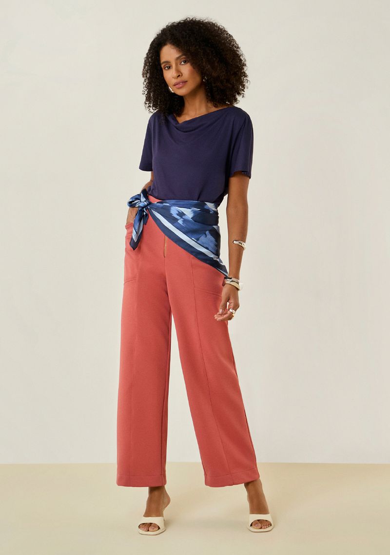A calça reta alta em rosa da Maria.Valentina é a escolha perfeita para mulheres que buscam aliar conforto e sofisticação. Com um corte impecável, ela exala elegância e confiança, ideal para ocasiões casuais e eventos refinados. Feita de poliéster e elastano, a peça oferece um caimento confortável e flexível. Combine-a com uma blusa de seda e salto alto para um visual marcante ou com camiseta básica e tênis para um dia a dia estiloso. A Coleção PELLICOLA captura a essência dos verões italianos, trazendo uma narrativa de beleza e simplicidade. Aposte em uma peça que valoriza sua essência e te faz brilhar.