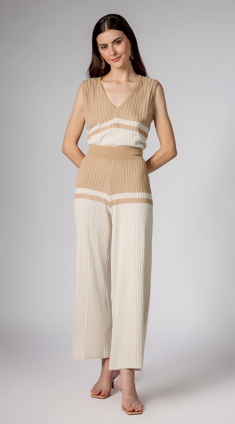 OUTLETRoupasCalçasCalca Maria.Valentina Reta Cós Alto Bloco De Cores Bege