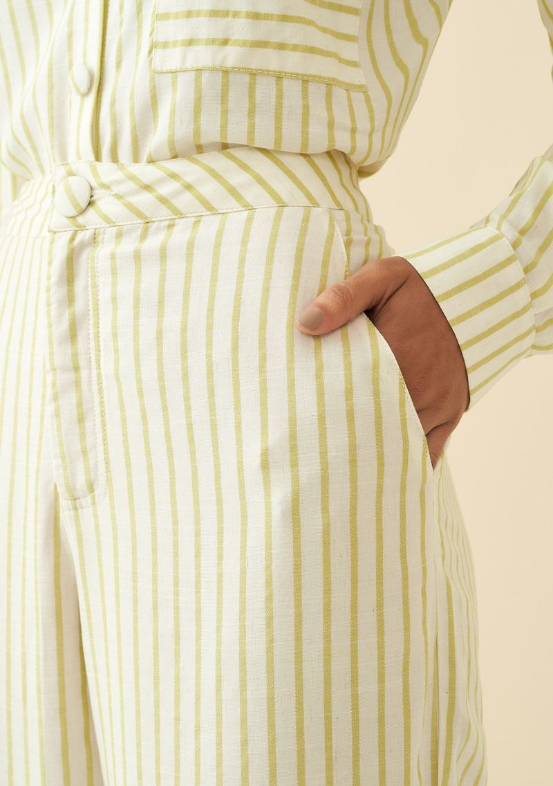 Calça Maria.Valentina Reta Cós Alto Bolso Faca Cru