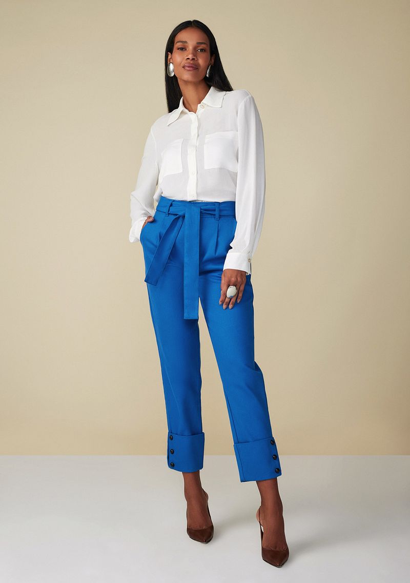 Calça Maria.Valentina Reta Cós Alto Com Cinto Azul