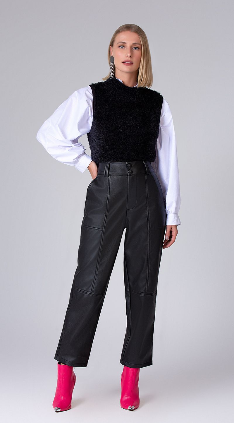 Calca Maria.Valentina Reta Cós Alto Com Recorte Preto