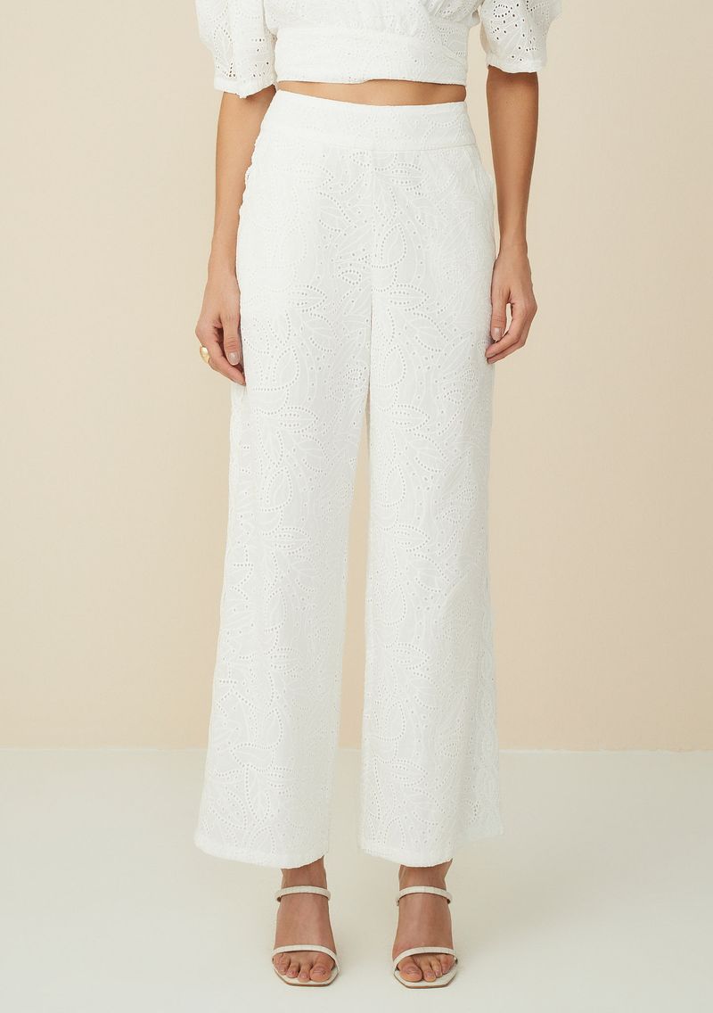 Calça Maria.Valentina Reta Cós Alto Detalhe Renda Off White