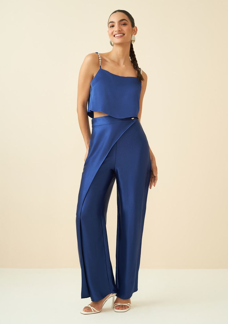 OUTLETRoupasCalçasCalça Maria.Valentina Reta Cós Alto Detalhe Sobreposição Azul Marinho