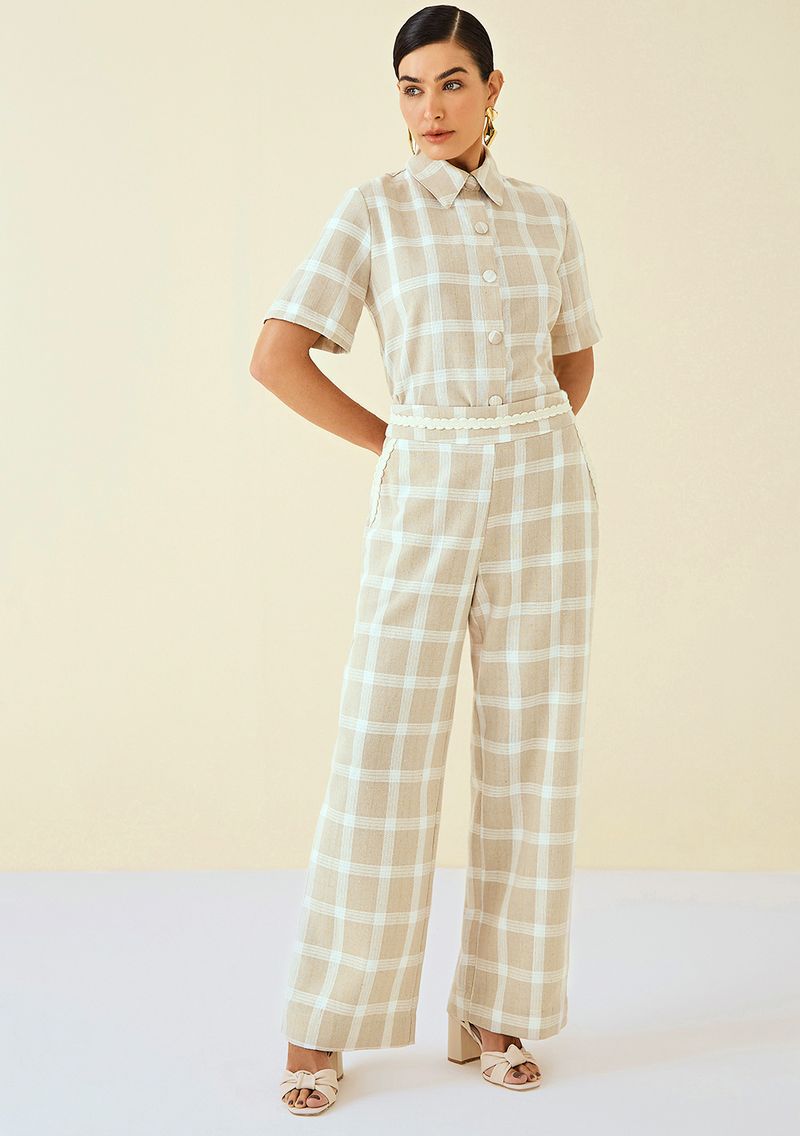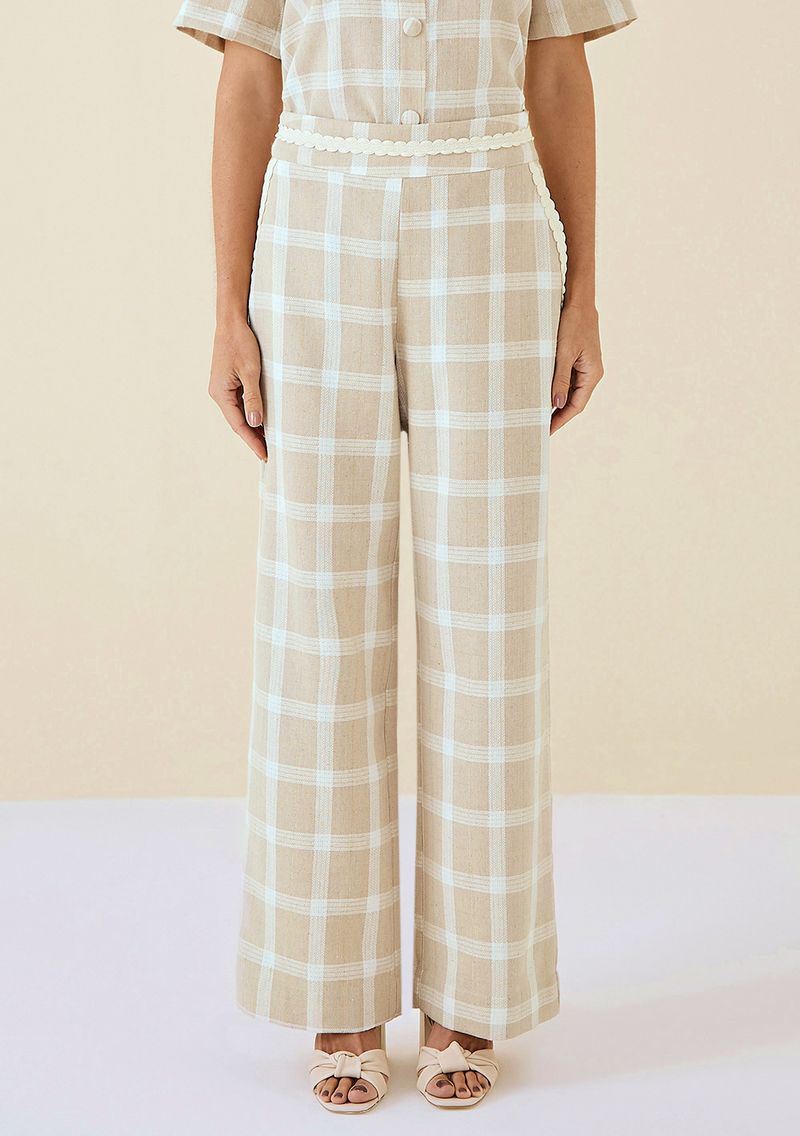 Calça Maria.Valentina Reta Cós Intermediário Detalhe Entremeio Bege