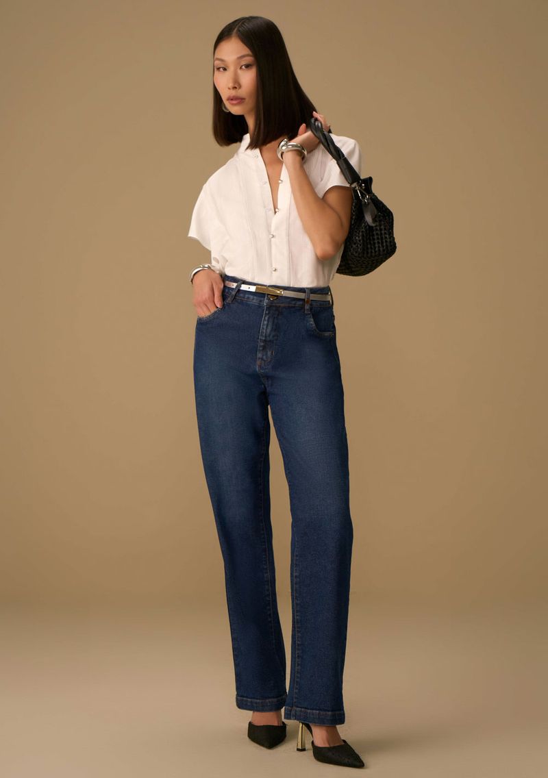 A calça reta azul da Maria.Valentina é a perfeita união entre conforto e sofisticação. Com sua modelagem em alfaiataria e jeans, ela veste com elegância e traz uma sensação de autoconfiança irresistível. Feita de algodão com um toque de elastano, garante um caimento impecável. Ideal para ocasiões que exigem estilo, combina perfeitamente com blusas de seda e sapatos de salto. Sinta-se empoderada e destaque sua essência com esta peça que celebra o melhor da moda contemporânea e atemporal.