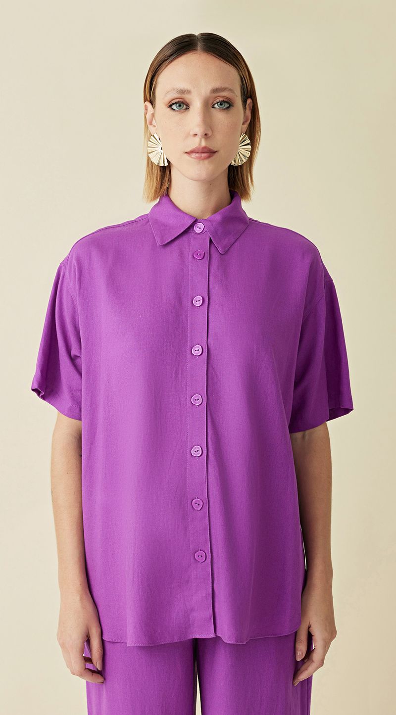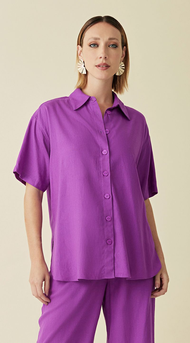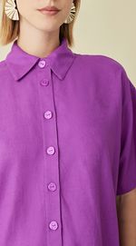 Camisa Maria.Valentina Manga Curta Detalhe Botão Roxo