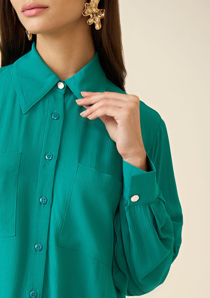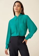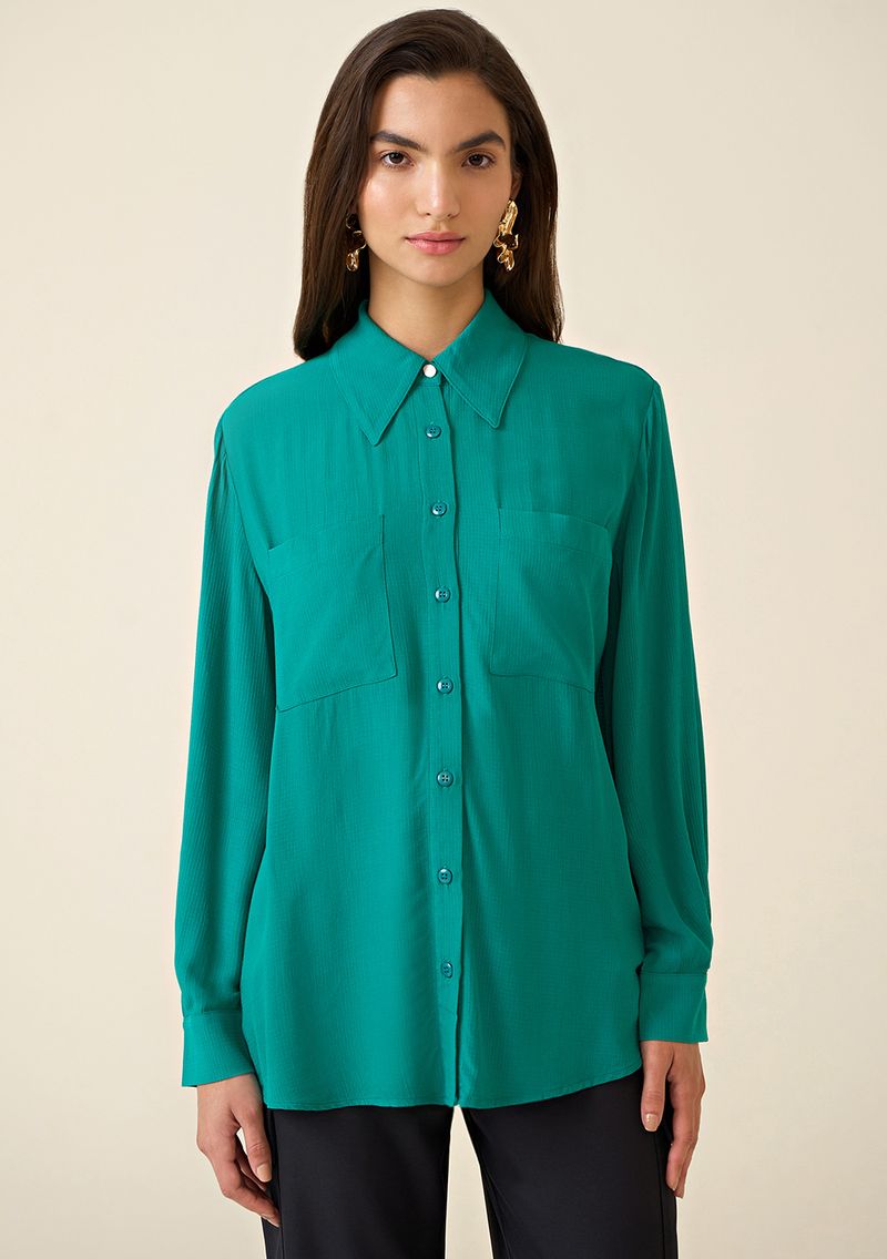 Camisa Maria.Valentina Manga Longa Com Bolso Sobreposto Verde